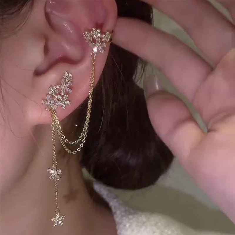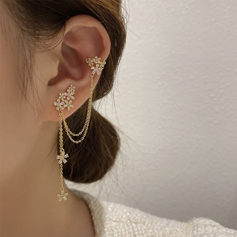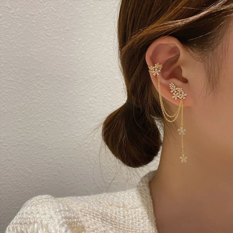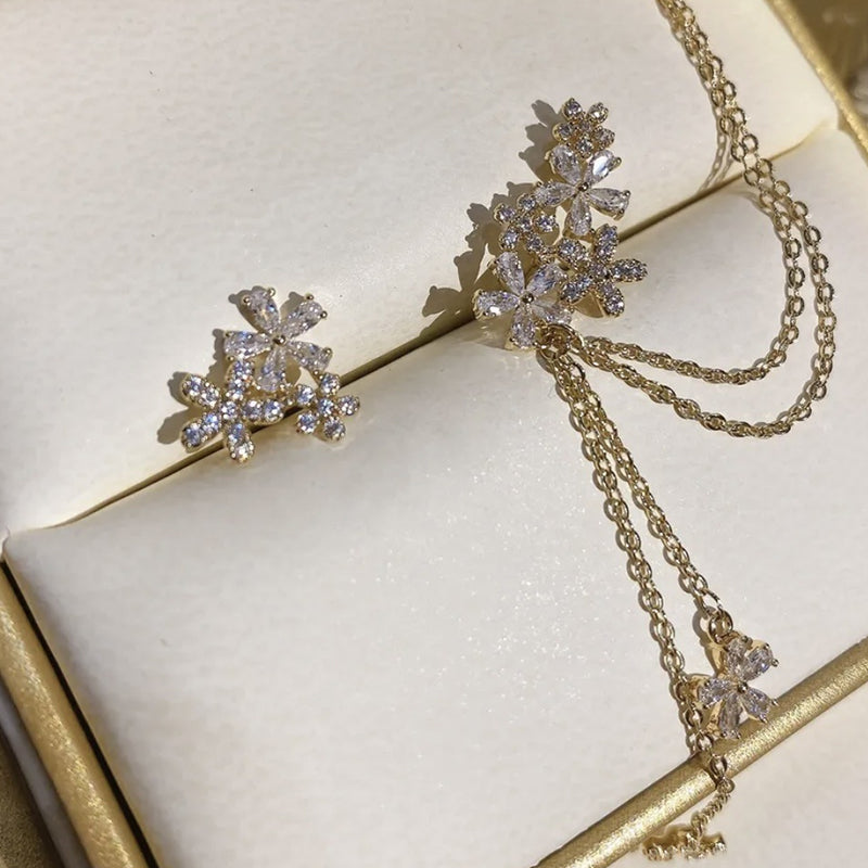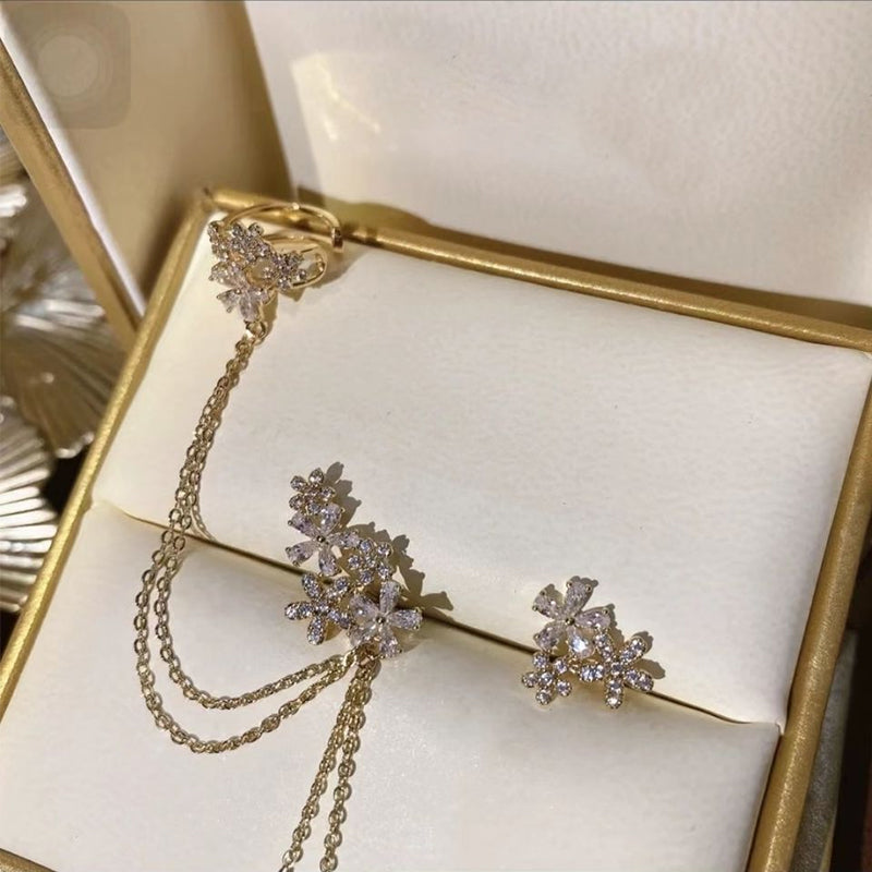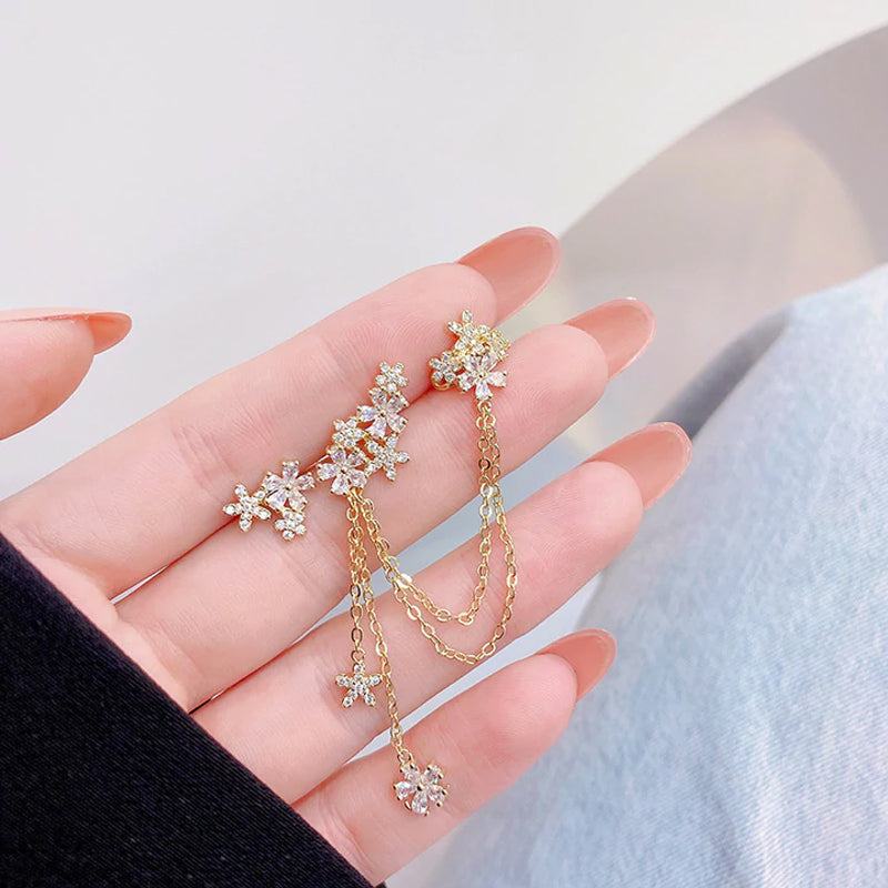 Crystal Flower Tassel Earrings