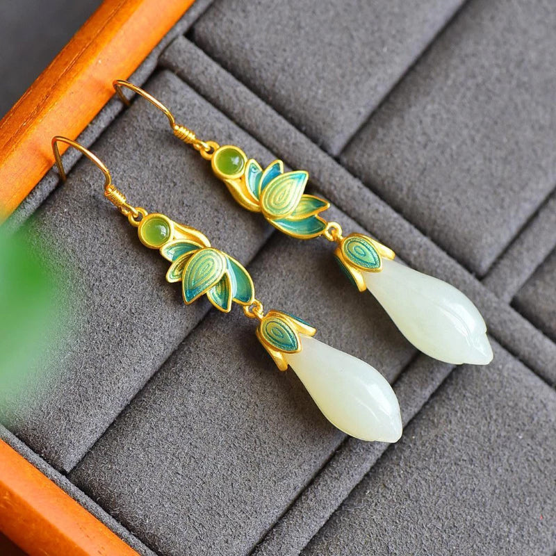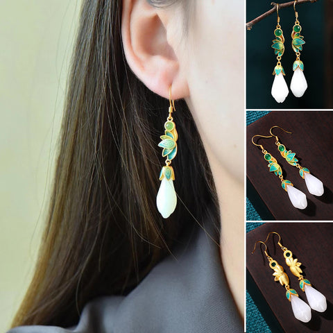 Enamel Drop Glaze Magnolia Flower Earrings