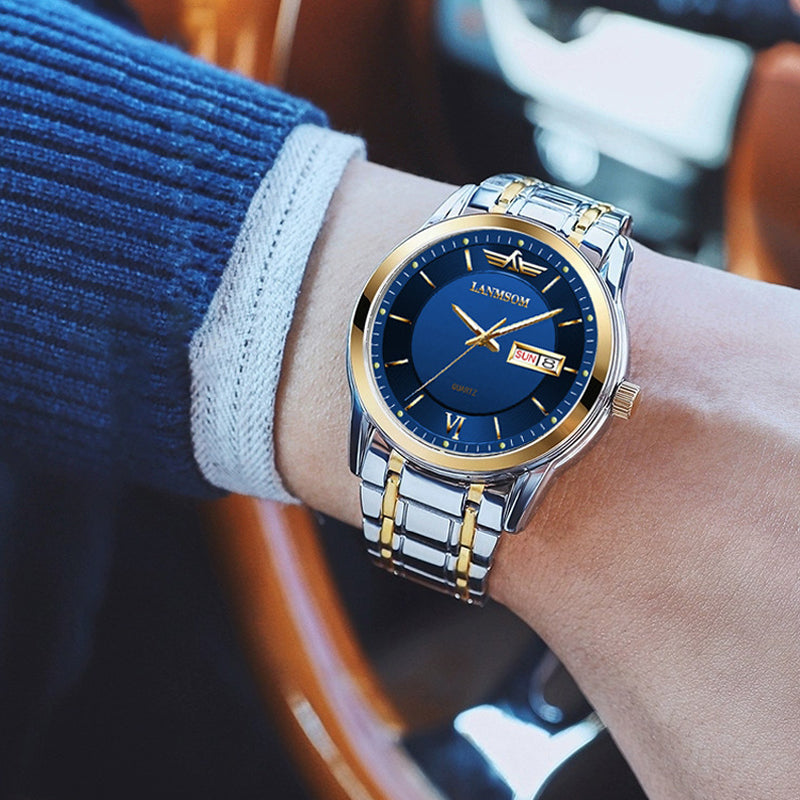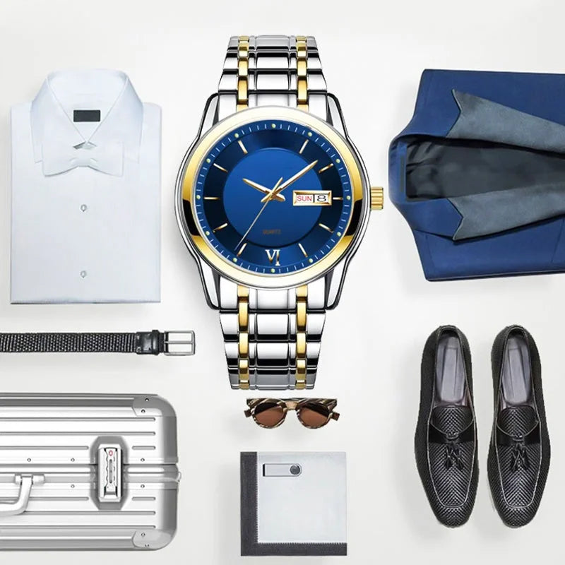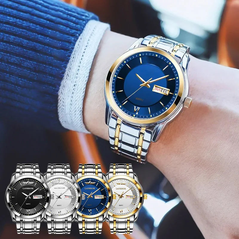 Men's Ultra-thin Waterproof Quartz Watch With Dual Calendar Window