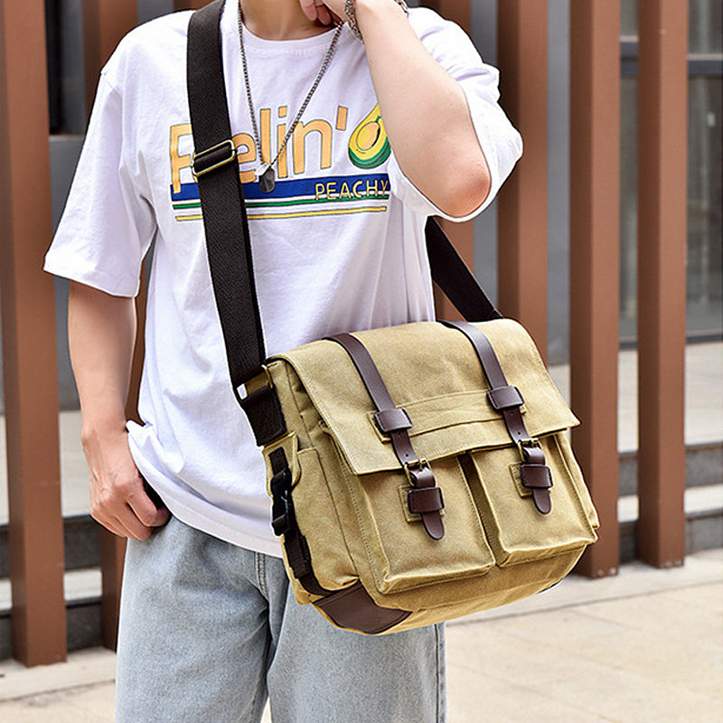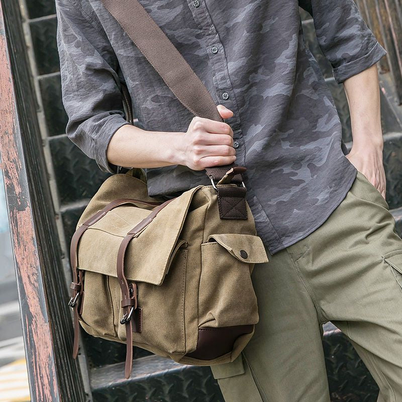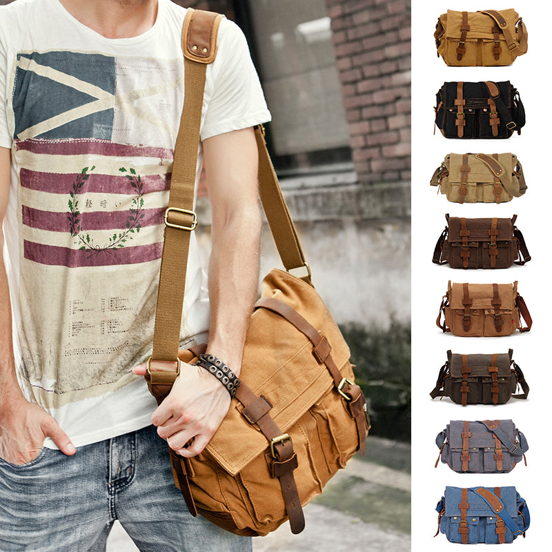 FASHION VINTAGE LEATHER CANVAS MEN'S MESSENGER BAG