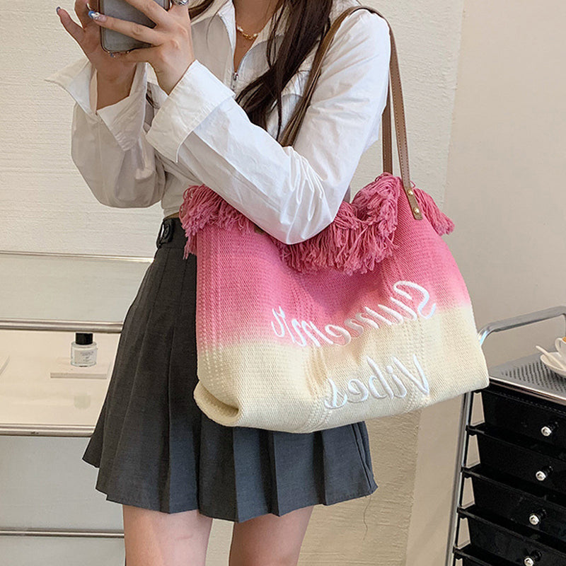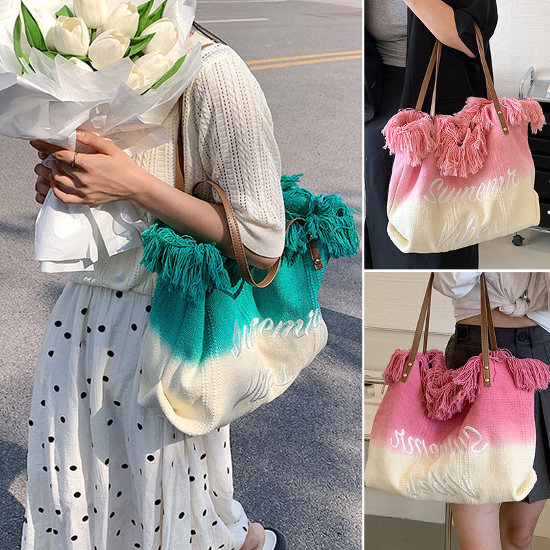 {"id":8145254482135,"title":"Gradient Color Style Tassel Tote For Women","handle":"gradient-color-style-tassel-tote-for-women","description":"\u003ch3 data-mce-fragment=\"1\"\u003e\u003cspan style=\"color: #ff8000;\" data-mce-fragment=\"1\"\u003e\u003cstrong data-mce-fragment=\"1\"\u003eFEATURES: \u003cbr\u003e\u003c\/strong\u003e\u003c\/span\u003e\u003c\/h3\u003e\n\u003cp style=\"text-align: center;\"\u003e\u003cspan style=\"color: #ff8000;\" data-mce-fragment=\"1\"\u003e\u003cstrong data-mce-fragment=\"1\"\u003e\u003cimg alt=\"\" src=\"https:\/\/cdn.shopifycdn.net\/s\/files\/1\/0356\/3048\/1544\/files\/fm2_4df450c3-ca97-47ec-8b5b-6dfebeb6d3d2_480x480.jpg?v=1695884399\"\u003e\u003c\/strong\u003e\u003c\/span\u003e\u003c\/p\u003e\n\u003cul\u003e\n\u003cli\u003e\n\u003cp\u003e\u003cspan style=\"color: #ff8000;\" data-mce-fragment=\"1\"\u003e\u003cstrong data-mce-fragment=\"1\"\u003e\u003cspan style=\"color: #000000;\"\u003e[Material] \u003c\/span\u003e\u003c\/strong\u003e\u003cspan style=\"color: #000000;\"\u003eThe beach bag is made with premium canvas which is both lightweight and durable.\u003c\/span\u003e\u003cstrong data-mce-fragment=\"1\"\u003e\u003cspan style=\"color: #000000;\"\u003e\u003cbr data-mce-fragment=\"1\"\u003e\u003c\/span\u003e\u003c\/strong\u003e\u003c\/span\u003e\u003c\/p\u003e\n\u003c\/li\u003e\n\u003cli\u003e\n\u003cp\u003e\u003cspan style=\"color: #ff8000;\" data-mce-fragment=\"1\"\u003e\u003cstrong data-mce-fragment=\"1\"\u003e\u003cspan style=\"color: #000000;\"\u003e[Summer Vibe] \u003c\/span\u003e\u003c\/strong\u003e\u003cspan style=\"color: #000000;\"\u003eThe hobo shoulder bag embroidered with Summer Vibe and designed with the stylish tassels is a perfect choice for your beach trip. Eye-catching enough wherever you go.\u003c\/span\u003e\u003cstrong data-mce-fragment=\"1\"\u003e\u003cspan style=\"color: #000000;\"\u003e\u003cbr data-mce-fragment=\"1\"\u003e\u003c\/span\u003e\u003c\/strong\u003e\u003c\/span\u003e\u003c\/p\u003e\n\u003c\/li\u003e\n\u003c\/ul\u003e\n\u003cp style=\"text-align: center;\"\u003e\u003cspan style=\"color: #ff8000;\" data-mce-fragment=\"1\"\u003e\u003cspan style=\"color: #000000;\"\u003e\u003cimg alt=\"\" src=\"https:\/\/cdn.shopifycdn.net\/s\/files\/1\/0356\/3048\/1544\/files\/fm_78f97134-bd57-4589-a5f8-c7787deb9344_480x480.jpg?v=1695884416\"\u003e\u003c\/span\u003e\u003c\/span\u003e\u003c\/p\u003e\n\u003cul\u003e\n\u003cli\u003e\n\u003cp\u003e\u003cspan style=\"color: #ff8000;\" data-mce-fragment=\"1\"\u003e\u003cstrong data-mce-fragment=\"1\"\u003e\u003cspan style=\"color: #000000;\"\u003e[Large Capacity]\u003c\/span\u003e\u003c\/strong\u003e\u003cspan style=\"color: #000000;\"\u003e Size: 44cm× 14cm× 32cm\/17.32\" × 5.51\" × 12.6\"(L*W*H) The handbag is large enough for your daily belongings and beach stuff like towel, swimsuit and sunglass.\u003c\/span\u003e\u003cspan style=\"color: #000000;\"\u003e\u003cbr data-mce-fragment=\"1\"\u003e\u003c\/span\u003e\u003c\/span\u003e\u003c\/p\u003e\n\u003c\/li\u003e\n\u003cli\u003e\n\u003cp\u003e\u003cspan style=\"color: #ff8000;\" data-mce-fragment=\"1\"\u003e\u003cstrong data-mce-fragment=\"1\"\u003e\u003cspan style=\"color: #000000;\"\u003e[Perfect Gift]\u003c\/span\u003e\u003c\/strong\u003e\u003cspan style=\"color: #000000;\"\u003e This handbag is really fashionable and suitable for women of all ages. It can be a great gift for special holidays and anniversaries.\u003c\/span\u003e\u003cstrong data-mce-fragment=\"1\"\u003e\u003cspan style=\"color: #000000;\"\u003e\u003cbr data-mce-fragment=\"1\"\u003e\u003c\/span\u003e\u003c\/strong\u003e\u003c\/span\u003e\u003c\/p\u003e\n\u003c\/li\u003e\n\u003cli\u003e\u003cspan style=\"color: #ff8000;\" data-mce-fragment=\"1\"\u003e\u003cstrong data-mce-fragment=\"1\"\u003e\u003cspan style=\"color: #000000;\"\u003e[Occasions]\u003c\/span\u003e\u003c\/strong\u003e\u003cspan style=\"color: #000000;\"\u003e The stylish bag is suitable for travelling, beach, daily use and so on; Handy convenient, brings nature and chic.\u003c\/span\u003e\u003cstrong data-mce-fragment=\"1\"\u003e\u003cbr\u003e\u003c\/strong\u003e\u003c\/span\u003e\u003c\/li\u003e\n\u003c\/ul\u003e\n\u003ch3 data-mce-fragment=\"1\"\u003e\u003cspan style=\"color: #ff8000;\" data-mce-fragment=\"1\"\u003e\u003cstrong data-mce-fragment=\"1\"\u003eProduct Parameters\u003c\/strong\u003e\u003c\/span\u003e\u003c\/h3\u003e\n\u003cul\u003e\n\u003cli\u003e\n\u003cp\u003e\u003cstrong\u003eGender: \u003cspan id=\"bag-gender-ppe12\" data-mce-fragment=\"1\"\u003eFemale\u003c\/span\u003e\u003c\/strong\u003e\u003c\/p\u003e\n\u003c\/li\u003e\n\u003cli\u003e\n\u003cp\u003e\u003cstrong\u003eBag Type: \u003cspan id=\"bag-type-ppe12\" data-mce-fragment=\"1\"\u003eTote\u003c\/span\u003e\u003c\/strong\u003e\u003c\/p\u003e\n\u003c\/li\u003e\n\u003cli\u003e\n\u003cp\u003e\u003cstrong\u003eMaterial: \u003cspan id=\"bag-material-ppe12\" data-mce-fragment=\"1\"\u003eCanvas\u003c\/span\u003e\u003c\/strong\u003e\u003c\/p\u003e\n\u003c\/li\u003e\n\u003cli\u003e\n\u003cp\u003e\u003cstrong\u003eOccasion: \u003cspan id=\"bag-occasion-ppe12\" data-mce-fragment=\"1\"\u003eDaily\u003c\/span\u003e\u003c\/strong\u003e\u003c\/p\u003e\n\u003c\/li\u003e\n\u003cli\u003e\n\u003cp\u003e\u003cstrong\u003eBag Size: 17.32\" × 5.51\" × 12.6\" \/44×14×32CM\u003c\/strong\u003e\u003c\/p\u003e\n\u003c\/li\u003e\n\u003c\/ul\u003e\n\u003cp style=\"text-align: center;\"\u003e\u003cstrong\u003e\u003cimg alt=\"\" src=\"https:\/\/cdn.shopifycdn.net\/s\/files\/1\/0356\/3048\/1544\/files\/468ef44610c31b5b50b747b4f9f5ee49_a570c639-ffa6-4662-b92a-51a4cc3c1bd3_480x480.jpg?v=1695884429\"\u003e\u003c\/strong\u003e\u003c\/p\u003e\n\u003cul\u003e\n\u003cli\u003e\n\u003cp\u003e\u003cstrong\u003eInternal Structure: 1 \u003cspan id=\"bag-internal-struct-ppe12\" data-mce-fragment=\"1\"\u003eMain Pocket\u003c\/span\u003e\u003c\/strong\u003e\u003c\/p\u003e\n\u003c\/li\u003e\n\u003cli\u003e\n\u003cp\u003e\u003cstrong\u003eStrap Type: \u003cspan id=\"bag-strap-