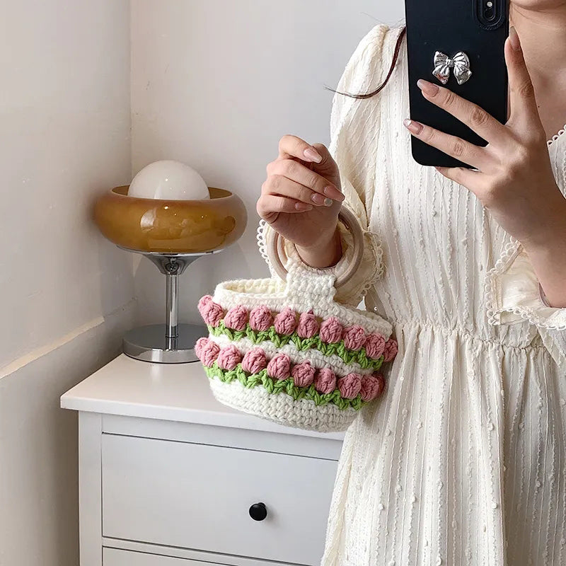 High Quality Woven Crochet Bucket Bag