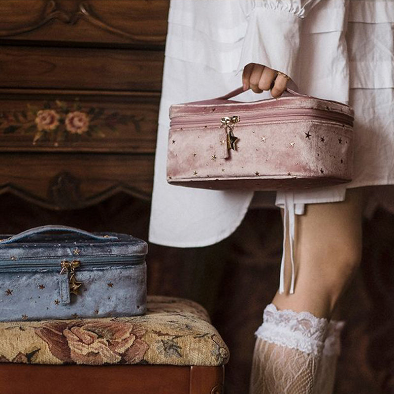 [Compact Size]\u003c\/strong\u003e Set of 2 makeup bags- velvet bag:Β 24.5*16.5*10cm\u003cspan data-mce-fragment=\"1\"\u003e\/9.65*6.50*3.94inΒ \u003c\/span\u003e+ wash bag: 22.5*7.5*15cm\/\u003cspan data-mce-fragment=\"1\"\u003e8.86*2.95*5.91in\u003c\/span\u003e, enough to hold all daily cosmetics and travel toiletry accessories.\u003c\/li\u003e\n\u003c\/ul\u003e\n\u003ch3 data-mce-fragment=\"1\"\u003e\u003cspan style=\"color: #ff2a00;\" data-mce-fragment=\"1\"\u003eSPECIFICATIONS\u003c\/span\u003e\u003c\/h3\u003e\n\u003cul data-mce-fragment=\"1\"\u003e\n\u003cli\u003e\n\u003cp\u003e\u003cstrong\u003eFabric texture:\u003c\/strong\u003e PU\u003c\/p\u003e\n\u003c\/li\u003e\n\u003cli\u003e\n\u003cp\u003e\u003cstrong\u003eLining texture:\u003c\/strong\u003e Cotton\u003c\/p\u003e\n\u003c\/li\u003e\n\u003cli\u003e\n\u003cp\u003e\u003cstrong\u003eColor:\u003c\/strong\u003e Pink\/Blue\/Grey\u003c\/p\u003e\n\u003c\/li\u003e\n\u003cli\u003e\n\u003cp\u003e\u003cstrong\u003eCosmetic bag size:\u003c\/strong\u003e 24.5*16.5*10cm\/9.65*6.50*3.94in\u003c\/p\u003e\n\u003c\/li\u003e\n\u003cli\u003e\n\u003cp\u003e\u003cstrong\u003eWash bag size:\u003c\/strong\u003e 22.5*7.5*15cm\/8.86*2.95*5.91in\u003c\/p\u003e\n\u003c\/li\u003e\n\u003cli\u003e\n\u003cp\u003e\u003cstrong\u003eProduct weight:\u003c\/strong\u003e 250g\u003c\/p\u003e\n\u003c\/li\u003e\n\u003c\/ul\u003e\n\u003ch3 data-mce-fragment=\"1\"\u003e\u003cspan style=\"color: #ff2a00;\" data-mce-fragment=\"1\"\u003ePACKAGE\u003c\/span\u003e\u003c\/h3\u003e\n\u003cul data-mce-fragment=\"1\"\u003e\n\u003cli data-mce-fragment=\"1\"\u003e1 * Large Capacity Velvet Cosmetic Bag\u003c\/li\u003e\n\u003cli data-mce-fragment=\"1\"\u003e\u003cspan\u003e1 * Wash bag\u003c\/span\u003e\u003c\/li\u003e\n\u003c\/ul\u003e\n\u003ch3 data-mce-fragment=\"1\"\u003e\u003cspan style=\"color: #ff2a00;\" data-mce-fragment=\"1\"\u003e\u003cstrong data-mce-fragment=\"1\"\u003eNOTE\u003c\/strong\u003e\u003c\/span\u003e\u003c\/h3\u003e\n\u003cul data-mce-fragment=\"1\"\u003e\n\u003cli data-mce-fragment=\"1\"\u003e\n\u003cp data-mce-fragment=\"1\"\u003ePlease allow slight measurement deviations due to manual measurement.\u003c\/p\u003e\n\u003c\/li\u003e\n\u003cli data-mce-fragment=\"1\"\u003e\n\u003cp data-mce-fragment=\"1\"\u003eDue to the different monitor and light effect, the actual color of the item might be slightly different from the color showed in the pictures.\u003c\/p\u003e\n\u003c\/li\u003e\n\u003c\/ul\u003e"}
