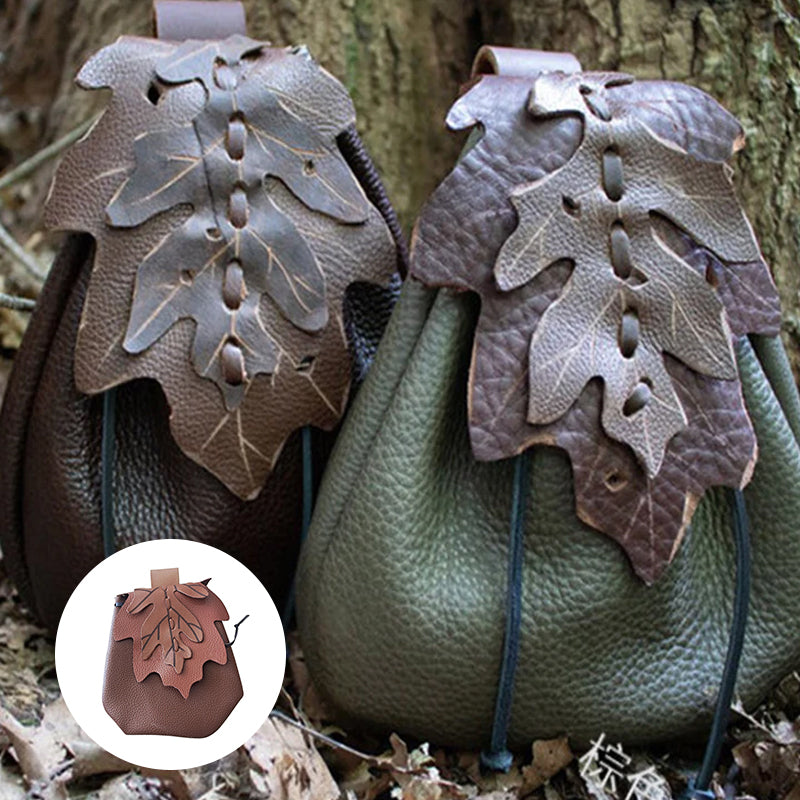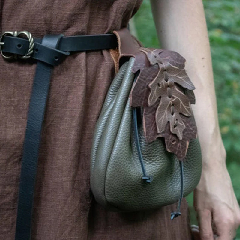 Medieval Renaissance Leather Drawstring Coin Pouch Bag
