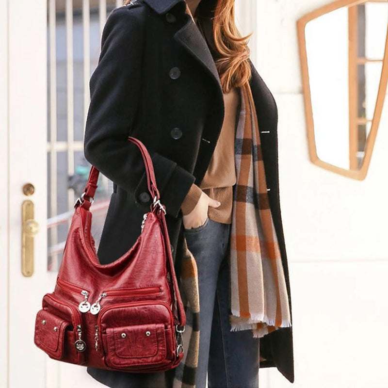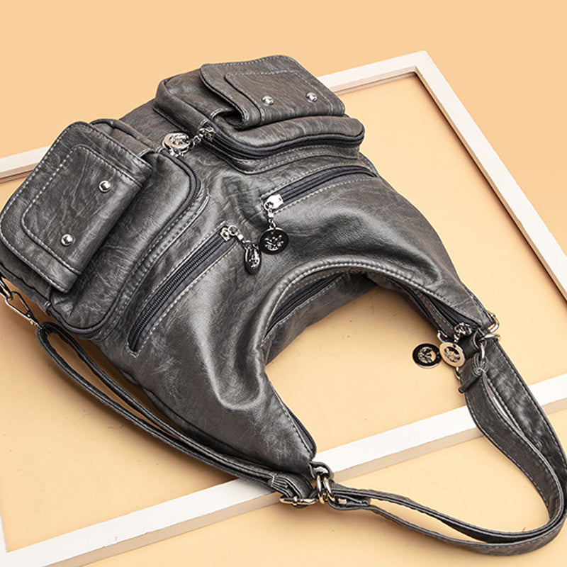 Multi-Pocket Vintage Shoulder Bag
