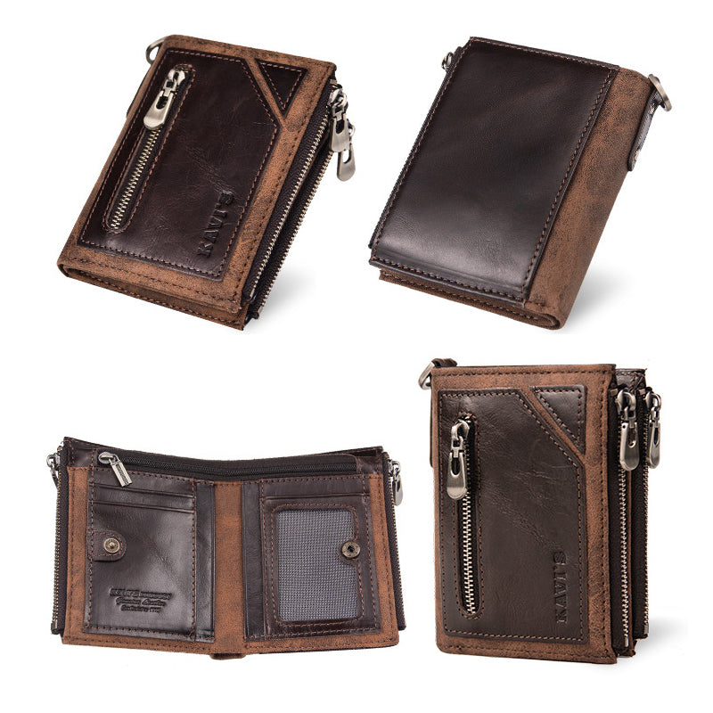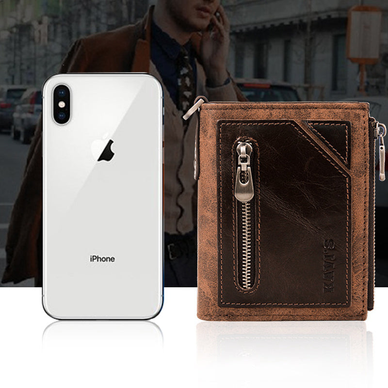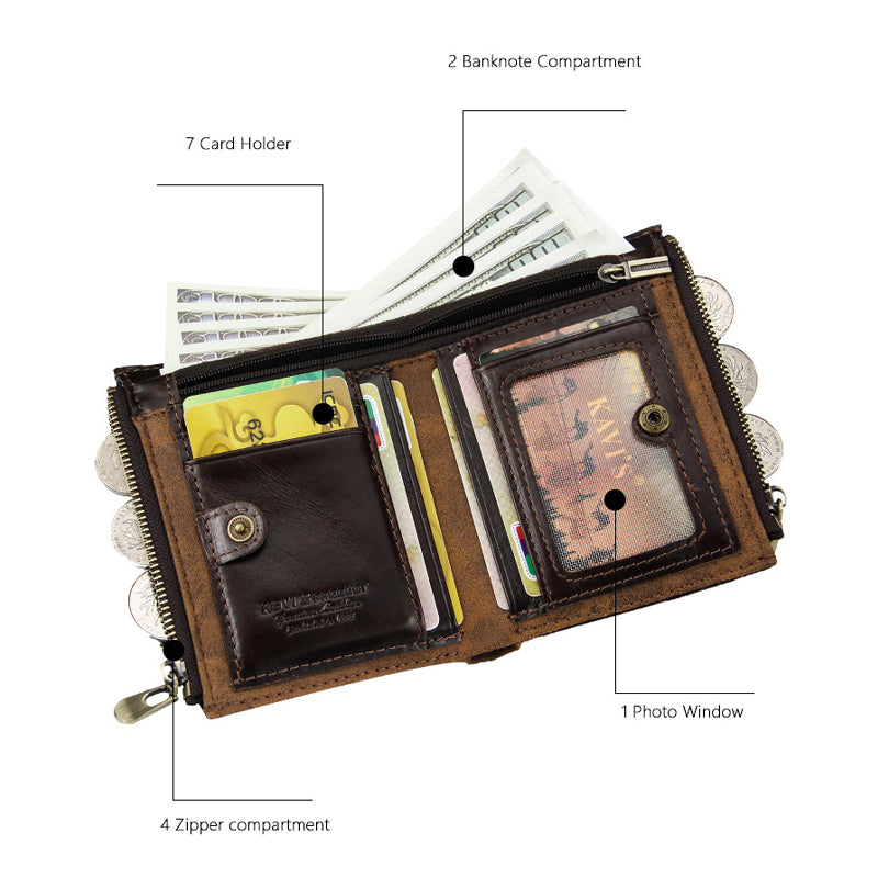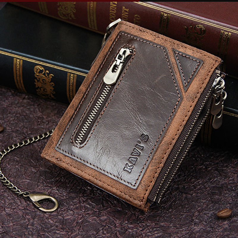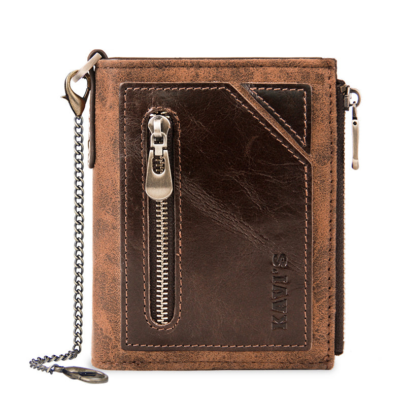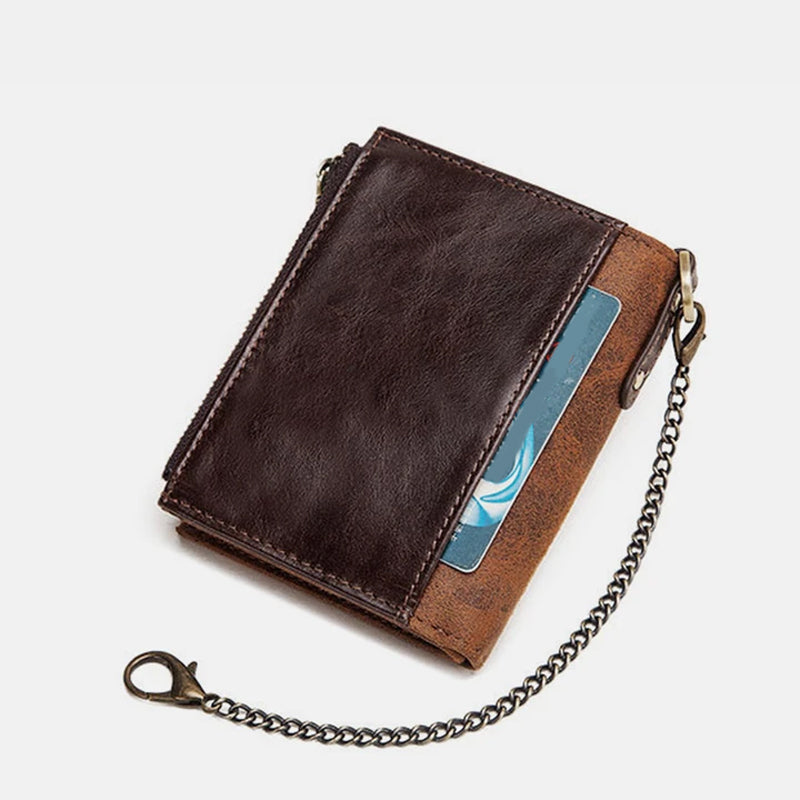 Vintage RFID PU Leather Bifold Coin Wallet With Chain