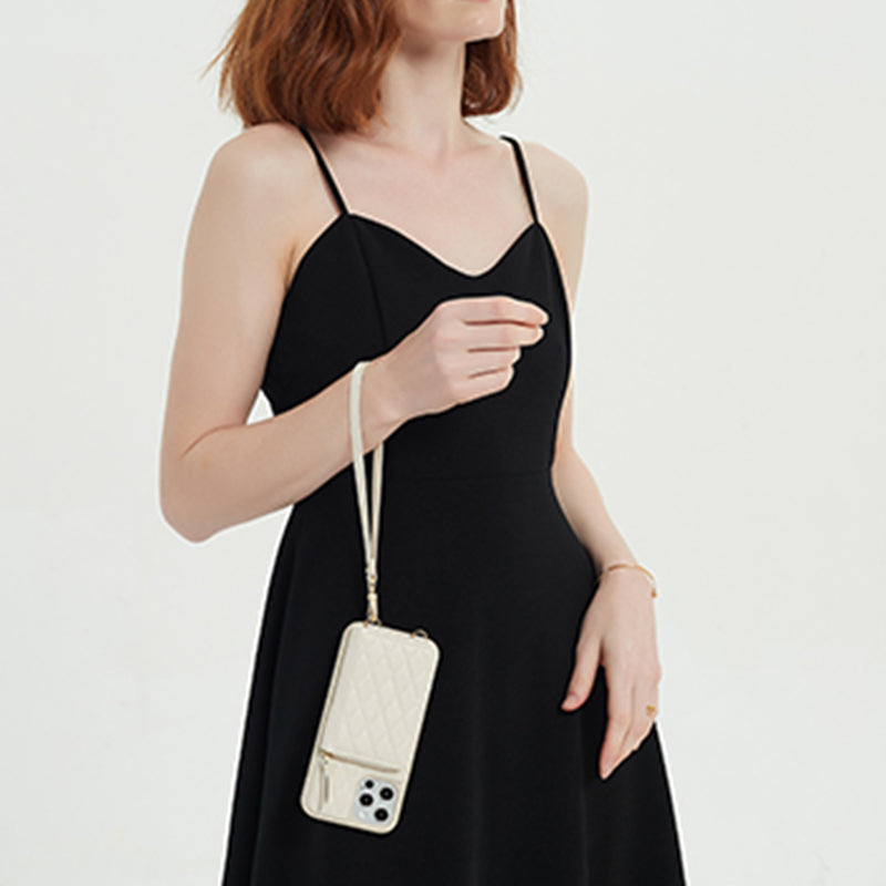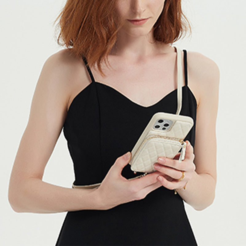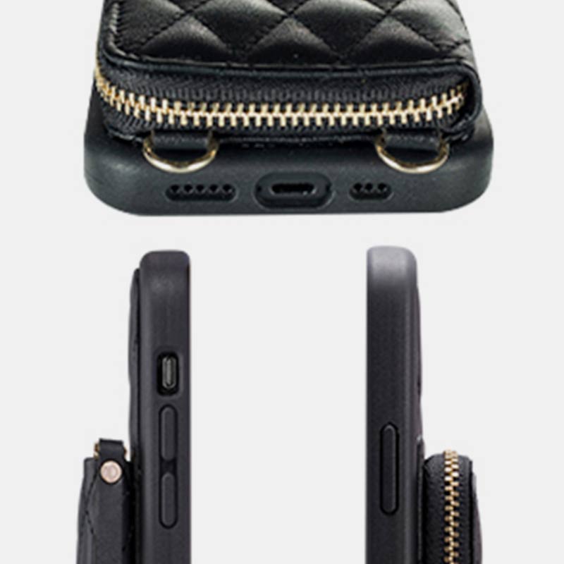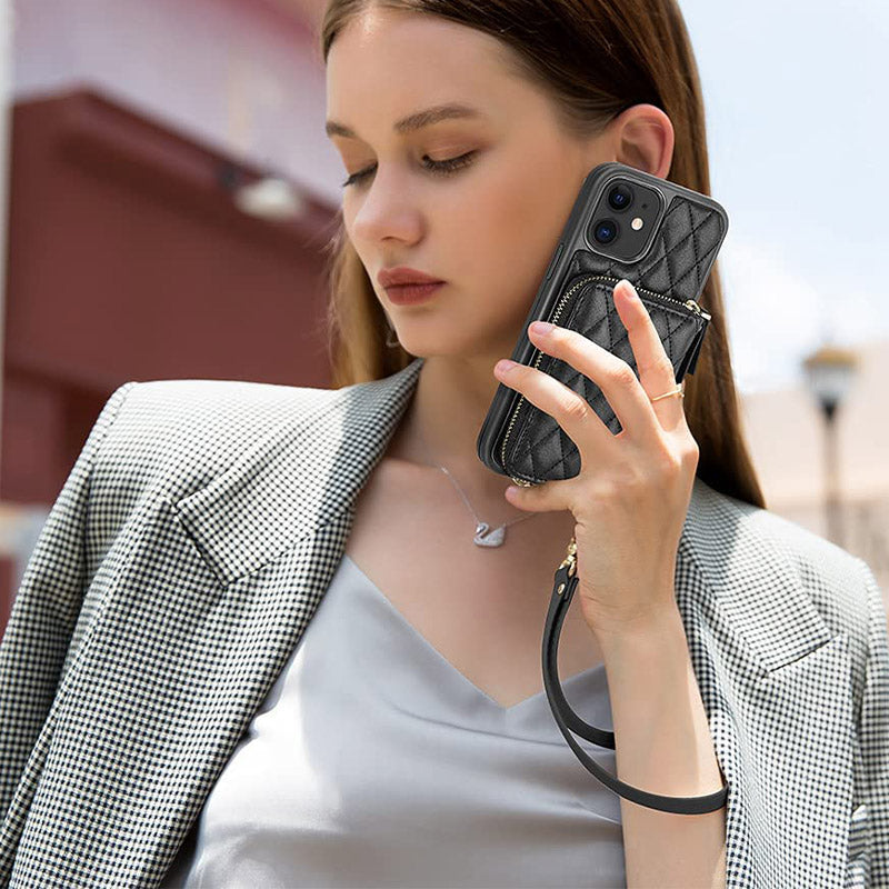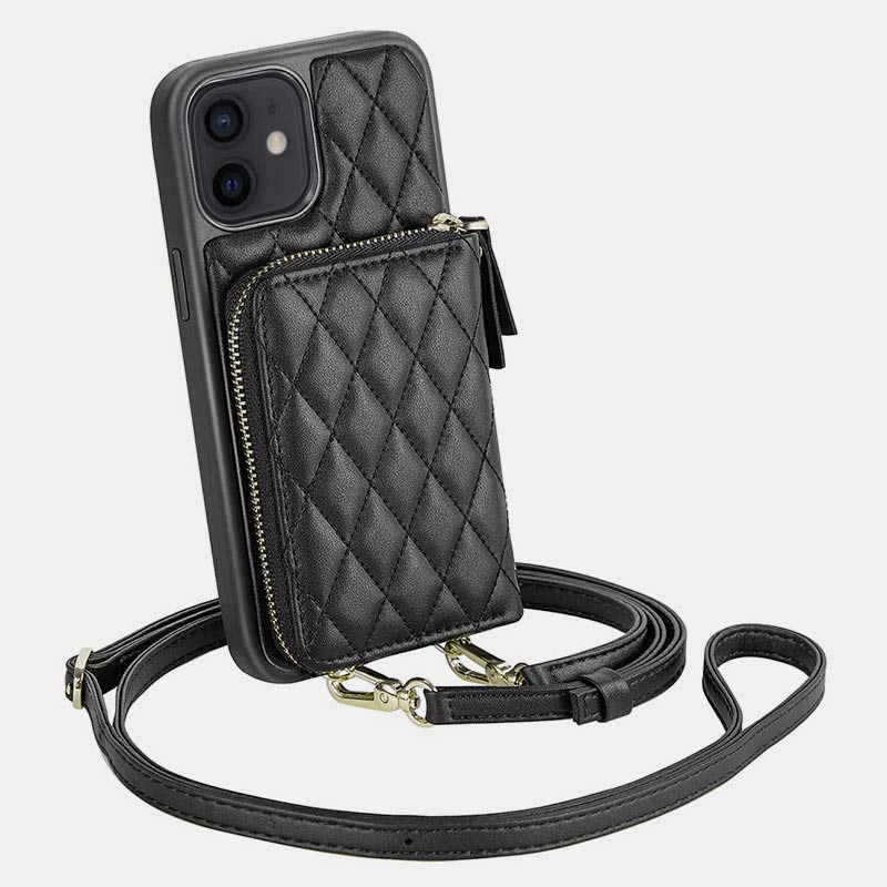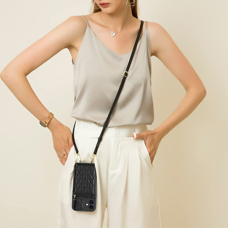 iPhone Phone Case Quilted Leather Wallet Case Card Holder with Crossbody Strap