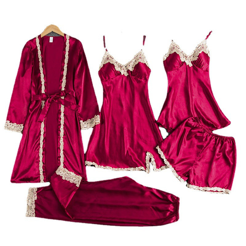 Soft Comfortable Ice Silk Lace Pajamas