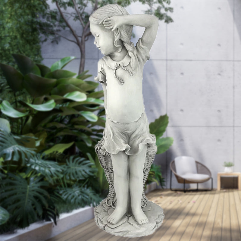 Little Girl Jacquard Blue Outdoor Garden Decoration