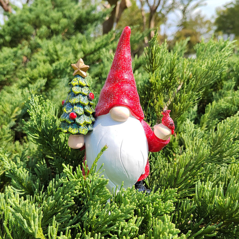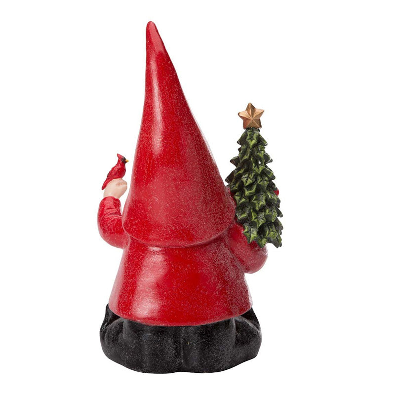 Resin Gnome Statue Holding Cardinal And Christmas Tree