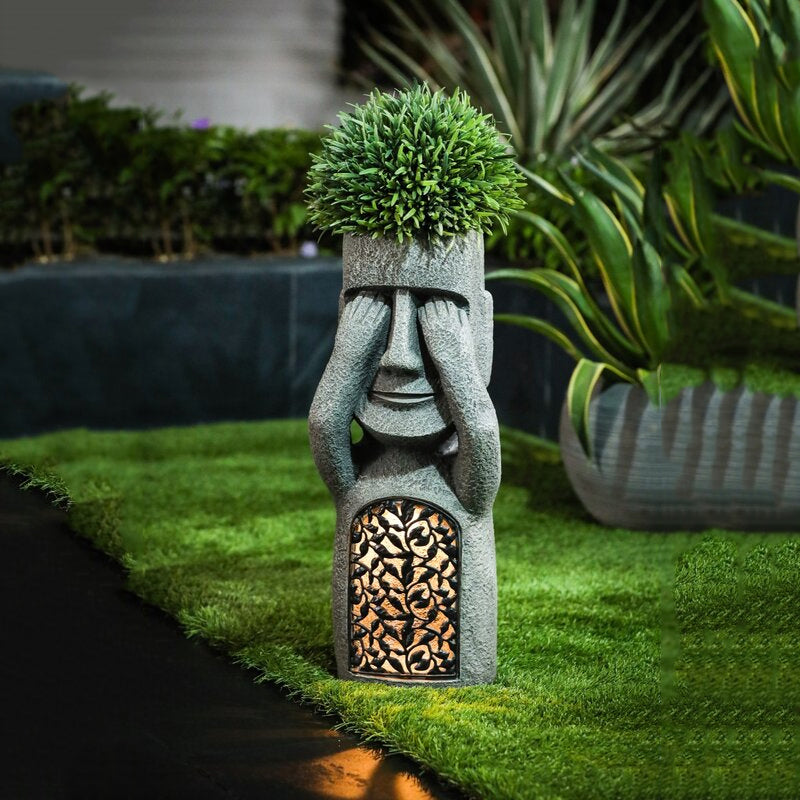 Solar LED Light Easter Island Flowerpot