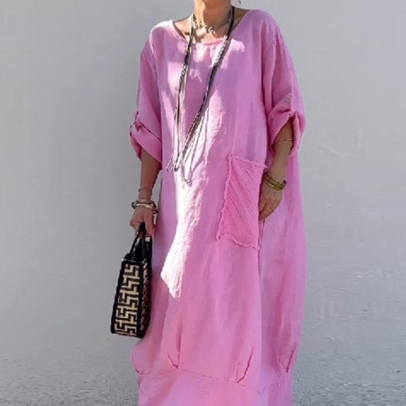 Cotton and Linen Patchwork Long Dress