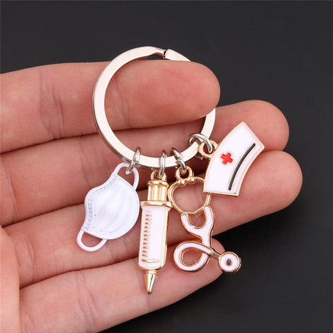 Nurse Doctor Medical Tool Stethoscope Syringe Face Mask Keychain
