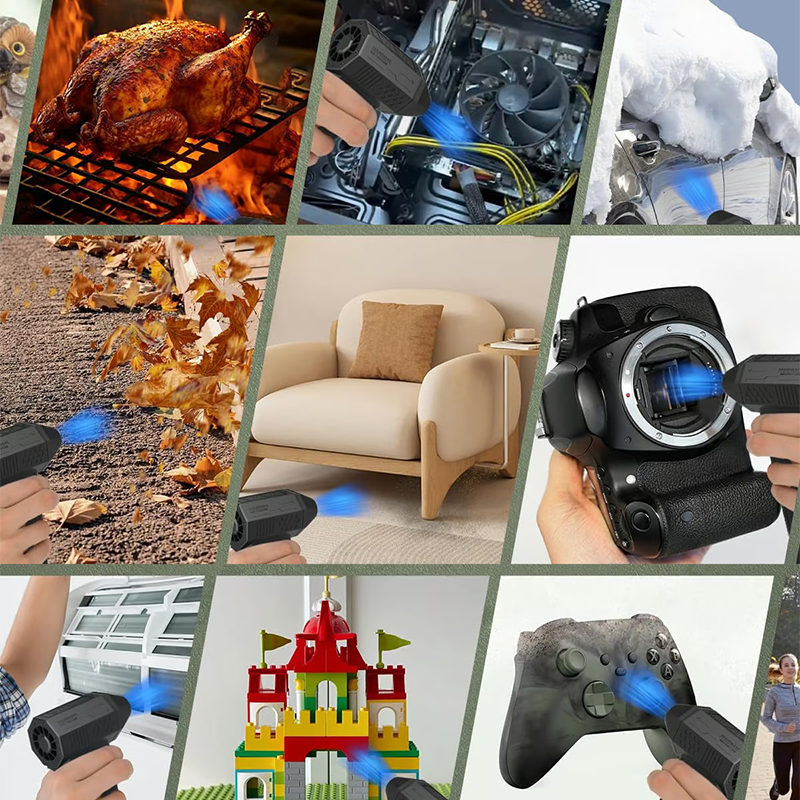 • Portable and Versatile: Weighing 315 g, the electric air duster is lightweight and easy to carry. It's ideal for indoor use such as cleaning desktop and keyboard, drying pet hair, inflating air beds and lifeboats. It also serves well for outdoor activities such as picnics and fire-starting