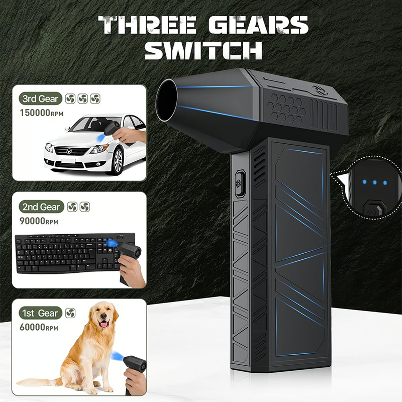 • Strong Wind Force: The compressed air duster reaches up to 150,000 RPM, delivers 180 G blowing force with a maximum wind speed of 52 m/s, effectively removes debris and dust and dries surfaces quickly. It has three adjustable speed settings for various cleaning needs