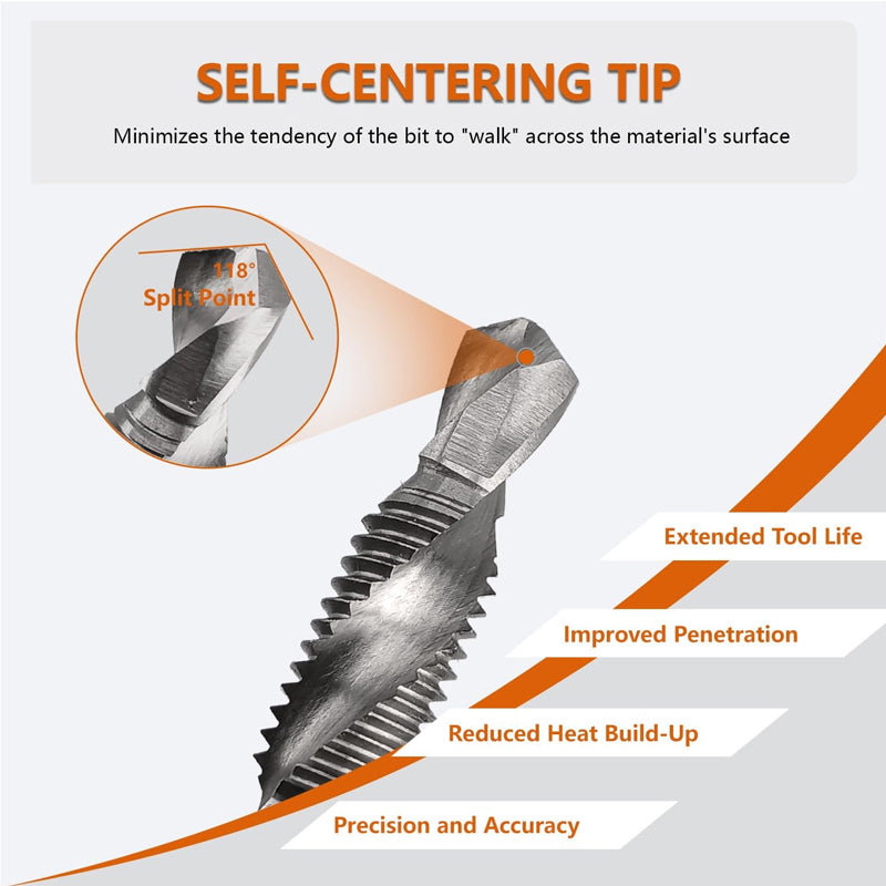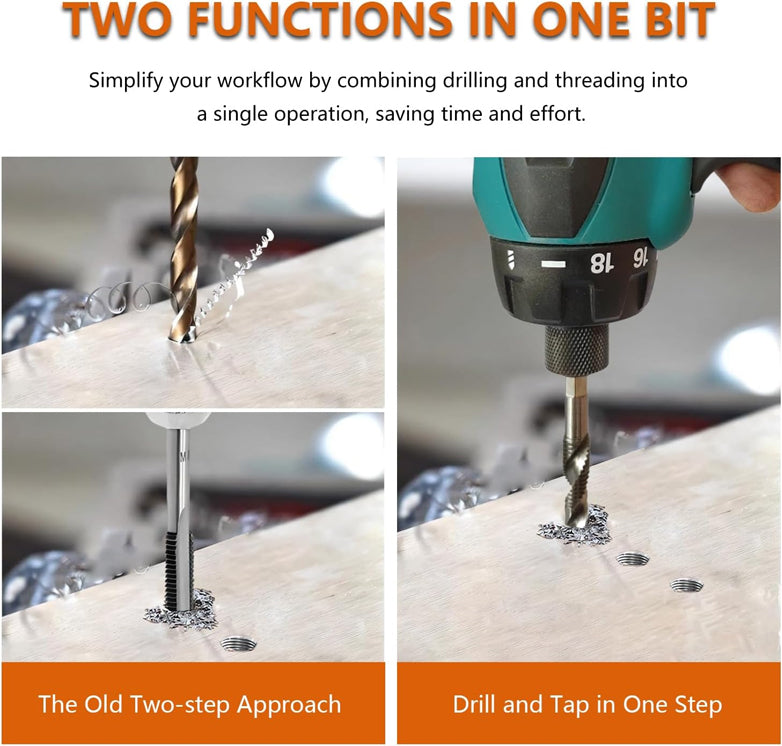 {"id":8907988533463,"title":"6 Piece Hexagon Shank Metric Composite Tap White Drill\/Titanium Plated","handle":"6-piece-hexagon-shank-metric-composite-tap-white-drill-titanium-plated","description":"\u003ch2 style=\"text-align: center;\"\u003e\u003cspan style=\"color: #ff2a00;\"\u003e\u003cstrong\u003e6 PIECE METRIC THREAD TAP DRILL BITS SET\u003c\/strong\u003e\u003c\/span\u003e\u003c\/h2\u003e\n\u003cdiv style=\"text-align: center;\"\u003e\n\u003cspan style=\"color: #ff2a00;\"\u003e\u003cstrong\u003e\u003c\/strong\u003e\u003c\/span\u003e\u003cbr\u003e\n\u003c\/div\u003e\n\u003cdiv style=\"text-align: center;\"\u003e\n\u003cspan style=\"color: #ff2a00;\"\u003e\u003cstrong\u003e\u003c\/strong\u003e\u003c\/span\u003e\u003cbr\u003e\n\u003c\/div\u003e\n\u003cp\u003e\u003cspan style=\"color: #000000;\"\u003e\u003cstrong\u003eComplete Hole Drilling, Tapping And Deburring\/Countersinking In One Operation With Power Drill. It Saves Labor, Time.\u003c\/strong\u003e \u003c\/span\u003e\u003cbr\u003e\u003cspan style=\"color: #000000;\"\u003eThe thread drilled by the drill is\u003cstrong\u003e very reliable.\u003c\/strong\u003e Even if you do \u003cstrong\u003enot use an electric drill\u003c\/strong\u003e, you can \u003cstrong\u003eeasily screw in the screws just by hand\u003c\/strong\u003e, saving a lot of work time.\u003c\/span\u003e\u003c\/p\u003e\n\u003cp\u003e \u003cbr\u003e\u003cimg src=\"https:\/\/cdn.shopify.com\/s\/files\/1\/0274\/6757\/9497\/files\/3_4_480x480.gif?v=1581497913\" alt=\"\" style=\"display: block; margin-left: auto; margin-right: auto;\"\u003e \u003cspan\u003e\u003cspan style=\"color: #ff8000;\"\u003e\u003cbr\u003e\u003c\/span\u003e\u003c\/span\u003e\u003c\/p\u003e\n\u003ch2\u003e\u003cspan style=\"color: #ff2a00;\"\u003e\u003cstrong\u003eFEATURES\u003c\/strong\u003e\u003c\/span\u003e\u003c\/h2\u003e\n\u003cul class=\"a-unordered-list a-vertical a-spacing-none\"\u003e\n\u003cli\u003e\u003cspan class=\"a-list-item\"\u003e\u003cspan style=\"color: #ff8000;\"\u003e\u003cstrong\u003eSturdy material -\u003c\/strong\u003e \u003c\/span\u003e\u003cspan style=\"color: #000000;\"\u003emade of HSS, enough hardness and sturdy construction make them not easy to break or deform, the surface is coated with titanium to prevent oxidation and not easy to rust, which can serve you for long time\u003c\/span\u003e\u003c\/span\u003e\u003c\/li\u003e\n\u003cli\u003e\n\u003cspan style=\"color: #ff8000;\"\u003e\u003cstrong\u003eMetric thread drill bit size -\u003c\/strong\u003e \u003c\/span\u003e\u003cspan style=\"color: #000000;\"\u003ethere are totally 6 pieces of taps in different sizes, such as M3 x 0.5, M4 x 0.7, M5 x 0.8, M6 x 1, M8 x 1.25, M10 x 1.5, standard 1\/4 inch (6.35 mm) hex shank\u003c\/span\u003e\n\u003c\/li\u003e\n\u003cli\u003e\u003cspan class=\"a-list-item\"\u003e\u003cspan style=\"color: #ff8000;\"\u003e\u003cstrong\u003eWidely application -\u003c\/strong\u003e \u003c\/span\u003e\u003cspan style=\"color: #000000;\"\u003ethese drill bit sets are suitable for drilling holes in wood, aluminum, iron, plastic and other materials with low hardness, the thickness of the material to be drilled is within 5 mm, which can save much labors and efforts\u003c\/span\u003e\u003c\/span\u003e\u003c\/li\u003e\n\u003cli\u003e\n\u003cspan style=\"color: #ff8000;\"\u003e\u003cstrong\u003eEasy to use -\u003c\/strong\u003e \u003c\/span\u003e\u003cspan style=\"color: #000000;\"\u003efast replacement composite cone by using drill edged principle; Drilling and tapping in one, one-step processing, which can help to save processing steps and time, also help to make your work more efficient\u003c\/span\u003e\u003cimg src=\"https:\/\/cdn.shopify.com\/s\/files\/1\/0274\/6757\/9497\/files\/2_2_9cd04c26-8aa5-4c30-ad96-58a1d2823244_480x480.gif?v=1581498320\" alt=\"\" style=\"outline: black solid 1px; text-align: left; color: #ff8000; text-transform: none; text-indent: 0px; letter-spacing: normal; font-family: -apple-system, BlinkMacSystemFont, 'San Francisco', Roboto, 'Segoe UI', 'Helvetica Neue', sans-serif; font-size: 14px; font-style: normal; font-variant: normal; font-weight: bold; text-decoration: none; word-spacing: 0px; white-space: normal; orphans: 2; -webkit-text-stroke-width: 0px; display: block; margin-left: auto; margin-right: auto;\"\u003e \u003c\/li\u003e\n\u003c\/ul\u003e\n\u003cp\u003e \u003c\/p\u003e\n\u003ch2\u003e\u003cspan style=\"color: #ff2a00;\"\u003eSPECIFICATION\u003c\/span\u003e\u003c\/h2\u003e\n\u003cp\u003e\u003cspan style=\"color: #ff8000;\"\u003e\u003cstrong\u003ePRODUCT DETAILS\u003c\/strong\u003e \u003c\/span\u003e\u003c\/p\u003e\n\u003cul\u003e\n\u003cli\u003e\u003cspan style=\"color: #000000;\"\u003eSuitable for soft metal, aluminum, and iron\u003c\/span\u003e\u003c\/li\u003e\n\u003cli\u003e\u003cspan style=\"color: #000000;\"\u003eHigh-speed steel(HSS ) material\u003c\/span\u003e\u003c\/li\u003e\n\u003cli\u003e\u003cspan style=\"color: #000000;\"\u003eShank: 1\/4\" (6.35mm) hex shank\u003c\/span\u003e\u003c\/li\u003e\n\u003c\/ul\u003e\n\u003ch3\u003e\u003cspan style=\"color: #ff2a00;\"\u003e\u003cstrong\u003e\u003cspan style=\"color: #ff8000;\"\u003eSIZES\u003c\/span\u003e\u003cbr\u003e\u003c\/strong\u003e\u003c\/span\u003e\u003c\/h3\u003e\n\u003cp\u003e\u003cspan style=\"color: rgb(0, 170, 255);\"\u003e\u003cstrong\u003eTitanium plated (short version)\u003c\/strong\u003e\u003c\/span\u003e\u003c\/p\u003e\n\u003cul\u003e\n\u003cli\u003e\u003cspan style=\"color: #000000;\"\u003eM3x0.5: Total length: 54mm, drill diameter: 2.5mm\u003c\/span\u003e\u003c\/li\u003e\n\u003cli\u003e\u003cspan style=\"color: #000000;\"\u003eM4x0.7: Total length: 54mm, drill diameter: 3.3mm\u003c\/span\u003e\u003c\/li\u003e\n\u003cli\u003e\u003cspan style=\"color: #000000;\"\u003eM5x0.8: Total length: 55mm, drill diameter: 4.2mm\u003c\/span\u003e\u003c\/li\u003e\n\u003cli\u003e\u003cspan style=\"color: #000000;\"\u003eM6x1: Total length: 56mm, drill diameter: 5.0mm\u003c\/span\u003e\u003c\/li\u003e\n\u003cli\