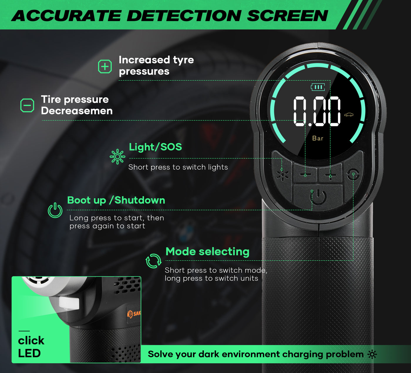 {"id":8486947061975,"title":"Mini Air Pump","handle":"mini-air-pump","description":"\u003cp\u003e\u003cspan style=\"color: rgb(56, 126, 72);\"\u003e\u003cstrong\u003e\u003cspan class=\"a-list-item\"\u003eFEATURES\u003c\/span\u003e\u003c\/strong\u003e\u003c\/span\u003e\u003c\/p\u003e\n\u003cul\u003e\n\u003cli\u003e\n\u003cp\u003e\u003cspan\u003e\u003cspan class=\"a-list-item\"\u003e\u003cstrong\u003eCORDLESS AIR PUMP DESIGN\u003c\/strong\u003e\u003cbr\u003eSaker tire inflator features a compact, cordless design that allows you to easily take it with you anywhere you go. It has four pressure units to choose from (PSI, BAR, KPA, and KG\/CM²). With multiple attachments included, the cordless tire inflator is a must-have for drivers, cyclists, and adventurers.\u003cimg height=\"415\" width=\"457\" src=\"https:\/\/cdn.shopify.com\/s\/files\/1\/0356\/3048\/1544\/files\/07_a91f4438-b88e-474c-b0e1-692acfaba1bb.jpg?v=1715332524\" alt=\"\"\u003e\u003c\/span\u003e\u003c\/span\u003e\u003c\/p\u003e\n\u003c\/li\u003e\n\u003cli\u003e\n\u003cp\u003e\u003cspan\u003e\u003cspan class=\"a-list-item\"\u003e\u003cstrong\u003eLED DIGITAL DISPLAY \u0026amp; AUTO SHUTOFF\u003c\/strong\u003e\u003cbr\u003eThis portable tire inflator for car comes with a precise pressure gauge and a large LED digital display, enabling you to read the real-time pressure and the preset pressure at just a glance. You can also rest assured with the auto shutoff design. This car tire inflator will stop automatically once reached the preset pressure. No more over-inflating, it's simple and safe. \u003c\/span\u003e\u003c\/span\u003e\u003c\/p\u003e\n\u003c\/li\u003e\n\u003cli\u003e\n\u003cp\u003e\u003cspan\u003e\u003cspan class=\"a-list-item\"\u003e\u003cstrong\u003eQUICK \u0026amp; EFFICIENT INFLATING\u003c\/strong\u003e\u003cbr\u003eSaker portable air compressor for car tires is a great solution for emergencies on the way. Saker tire pump for car portable features a powerful motor that can quickly inflate a 195\/55 R15 car tire from 22psi to 36psi within 3 minutes. Besides, it's recommended to give the appliance a rest for at least 10 minutes after each 10-minute use.\u003cimg alt=\"\" src=\"https:\/\/cdn.shopify.com\/s\/files\/1\/0356\/3048\/1544\/files\/04_5e6aea22-c87b-4dab-9b4c-d2b3f9ad5ac8.jpg?v=1715332525\" width=\"477\" height=\"434\" style=\"display: block; margin-left: auto; margin-right: auto;\"\u003e\u003c\/span\u003e\u003c\/span\u003e\u003c\/p\u003e\n\u003c\/li\u003e\n\u003cli\u003e\n\u003cp\u003e\u003cspan\u003e\u003cspan class=\"a-list-item\"\u003e\u003cstrong\u003ePOWERFUL 6000mAh BATTERY\u003c\/strong\u003e\u003cbr\u003eThis battery air compressor does not require an external power supply while working. Just fully charge it for 4 hours and it can work continuously for 20 minutes, providing you with ample time to inflate your tires or other items. Additionally, this car air pump features a built-in fan and cooling holes, ensuring effective heat dissipation for prolonged and reliable performance.\u003c\/span\u003e\u003c\/span\u003e\u003c\/p\u003e\n\u003c\/li\u003e\n\u003cli\u003e\n\u003cp\u003e\u003cspan\u003e\u003cspan class=\"a-list-item\"\u003e\u003cstrong\u003eBRIGHT LED LIGHT\u003c\/strong\u003e\u003cbr\u003eBeing multipurpose, it is more than a car air pump. On the top of this tire pump is a LED light providing convenience for you to inflate and change tires in the dark. There are 3 modes of LED light to facilitate use in dark environments: flash light, alarm light, and SOS light. Saker car air compressor is definitely a must-have in your car!\u003cimg alt=\"\" src=\"https:\/\/cdn.shopify.com\/s\/files\/1\/0356\/3048\/1544\/files\/02_9f62bb02-b90f-4185-aa95-7b422c10dd1f.jpg?v=1715332524\" width=\"496\" height=\"451\" style=\"display: block; margin-left: auto; margin-right: auto;\"\u003e\u003c\/span\u003e\u003c\/span\u003e\u003c\/p\u003e\n\u003c\/li\u003e\n\u003c\/ul\u003e\n\u003cp\u003e\u003cspan style=\"color: rgb(56, 126, 72);\"\u003e\u003cstrong\u003e\u003cspan class=\"a-list-item\"\u003eSPECIFICATIONS\u003c\/span\u003e\u003c\/strong\u003e\u003c\/span\u003e\u003c\/p\u003e\n\u003cul\u003e\n\u003cli\u003e\n\u003cp\u003e\u003cstrong\u003eStorage Temperature:\u003c\/strong\u003e -20 ~ 60°C\u003c\/p\u003e\n\u003c\/li\u003e\n\u003cli\u003e\n\u003cp\u003e\u003cstrong\u003eProduct Size:\u003c\/strong\u003e 85*55*170mm\/3.35*2.17*6.69in\u003c\/p\u003e\n\u003c\/li\u003e\n\u003cli\u003e\n\u003cp\u003e\u003cstrong\u003eInput: \u003c\/strong\u003e5V\/2A9V2A\u003c\/p\u003e\n\u003c\/li\u003e\n\u003cli\u003e\n\u003cp\u003e\u003cstrong\u003eOutput: \u003c\/strong\u003e5 V\/2A\u003c\/p\u003e\n\u003c\/li\u003e\n\u003cli\u003e\n\u003cp\u003e\u003cstrong\u003eLED Lighting: \u003c\/strong\u003e1 LED lighting\u003c\/p\u003e\n\u003c\/li\u003e\n\u003cli\u003e\n\u003cp\u003e\u003cstrong\u003eWorking Temperature: \u003c\/strong\u003e-10 ~ 45 °\u003c\/p\u003e\n\u003c\/li\u003e\n\u003cli\u003e\n\u003cp\u003e\u003cstrong\u003eConflating Tube Size: \u003c\/strong\u003e200mm trachea extraction length(including air nozzle)\u003c\/p\u003e\n\u003c\/li\u003e\n\u003cli\u003e\n\u003cp\u003e\u003cb\u003eColor:\u003c\/b\u003e\u003cspan\u003e \u003c\/span\u003eBlack\u003c\/p\u003e\n\u003c\/li\u003e\n\u003cli\u003e\n\u003cp\u003e\u003cstrong\u003eWeight:\u003cspan\u003e \u003c\/span\u003e\u003c\/strong\u003e700g\u003c\/p\u003e\n\u003c\/li\u003e\n\u003c\/ul\u003e\n\u003cp\u003e\u003cspan style=\"color: rgb(56, 126, 72);\" data-mce-fragment=\"1\"\u003e\u003cstrong data-mce-fragment=\"1\"\u003ePACKAGE\u003c\/strong\u003e\u003c\/span\u003e\u003c\/p\u003e\n\u003cul data-mce-fragment=\"1\"\u003e\n\u003cli data-mce-fragment=\"1\"\u003e1 Set * Mini Air Pump\u003c\/li\u003e\n\u003c\/ul\u003e\n\u003cp\u003e\u003cimg style=\"display: block; margin-left: auto; margin-right: auto;\" height=\"464\" width=\"464\" src=\"https:\/\/cdn.shopify.com\/s\/files\/1\/0356\/3048\/1544\/files\/74b96dbb2d19db9758ba306fc55ad040_68db693e-0b08-4e05-9f7c-d982068663df.jpg?v=1715332525\