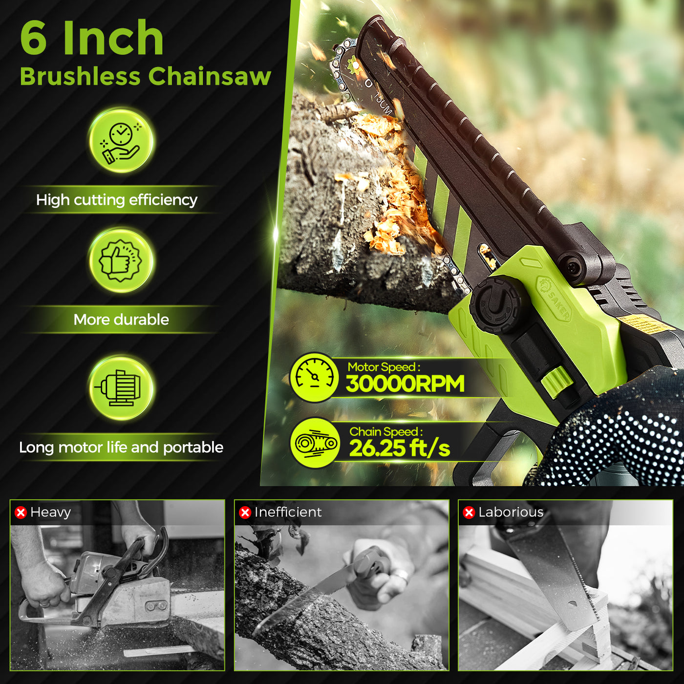 Saker 2-in-1 Brushless Pole Saw & Mini Chainsaw with 3 Replacement Chain