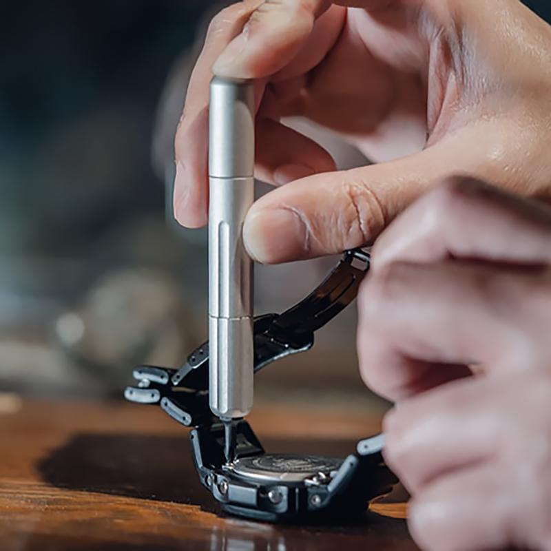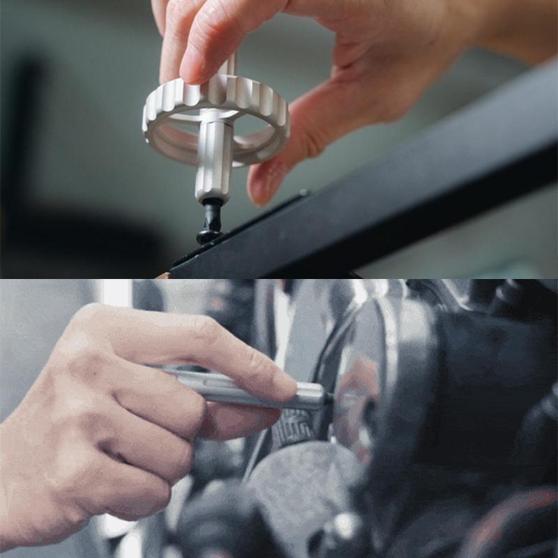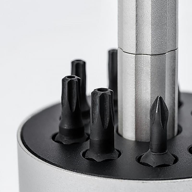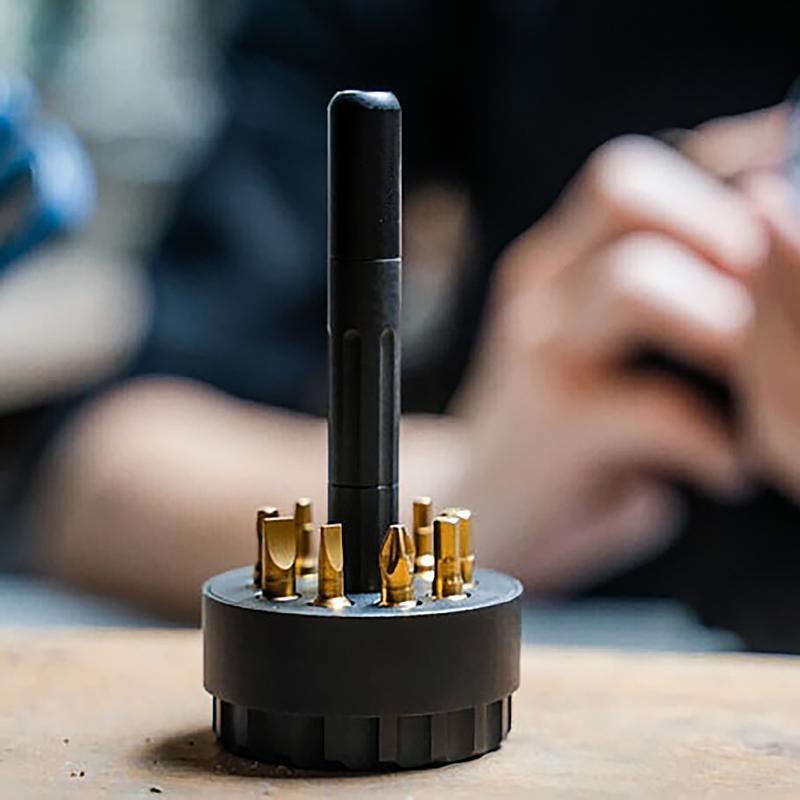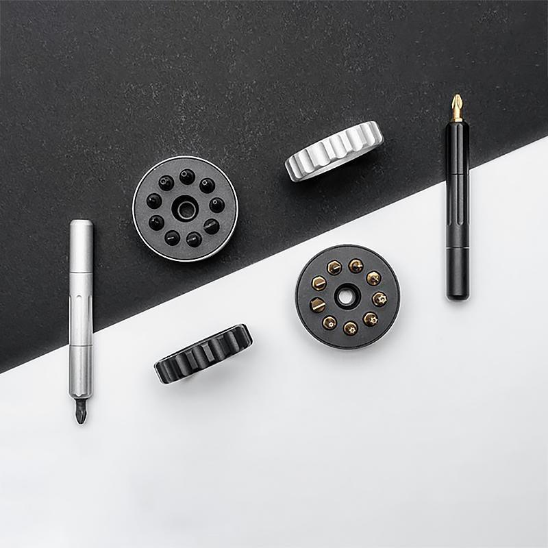 {"id":4708701077640,"title":"Spinner Drive - Infinite Possibilities","handle":"spinner-drive-infinite-possibilities","description":"\u003cp style=\"text-align: center;\"\u003e\u003cspan style=\"color: #cc0000;\"\u003e\u003cstrong\u003eMake easy torque adjustments with ergonomic spinner wheel and smooth ball bearing. Handle all kinds of repairs all in one package.\u003c\/strong\u003e\u003c\/span\u003e\u003c\/p\u003e\n\u003cp\u003e\u003cspan\u003eFast Company “This reinvented screwdriver is the tool to end all tools”\u003cbr\u003eNews Atlas “Modular screwdriver designed to do it all”\u003cbr\u003eGone are the days of fiddling with a bunch of different tools, the Spinner Drive is the minimalist solution to replace your precision screwdrivers, standard screwdrivers and T-Handle screwdriver.\u003cbr\u003e\u003c\/span\u003e\u003c\/p\u003e\n\u003cul\u003e\n\u003cli\u003e\u003cspan style=\"color: #ff9900;\"\u003e \u003cstrong\u003eNo Redundancy, No Problem\u003c\/strong\u003e \u003c\/span\u003e\u003c\/li\u003e\n\u003c\/ul\u003e\n\u003cp\u003eWhen it comes to screwdrivers, it's always a love-hate relationship. Traditional screwdrivers are one-dimensional tools that only solve one problem at a time. It usually comes with a hideous design or ill-organized bit storage. Don't even get us started with the frustration of trying to screw or unscrew rusted screws with small diameter handle.\u003c\/p\u003e\n\u003cp\u003e\u003cspan\u003eWe believe that a reliable tool should be functional and practical. \u003c\/span\u003e\u003c\/p\u003e\n\u003cul\u003e\n\u003cli\u003e\u003cspan style=\"color: #ff9900;\"\u003e \u003cstrong\u003eFeatures Nonstop\u003c\/strong\u003e \u003c\/span\u003e\u003c\/li\u003e\n\u003c\/ul\u003e\n\u003cp\u003eSometimes the smallest detail can make a world of difference. The\u003cspan\u003e \u003c\/span\u003e\u003cstrong\u003eSpinner Drive\u003c\/strong\u003e\u003cspan\u003e \u003c\/span\u003eis equipped with a bunch of neat features and design to unlock the full potential of a screwdriver.\u003c\/p\u003e\n\u003cul\u003e\n\u003cli\u003e\u003cspan style=\"color: #ff9900;\"\u003e\u003cstrong\u003eButtery Smooth Rotation\u003c\/strong\u003e\u003c\/span\u003e\u003c\/li\u003e\n\u003c\/ul\u003e\n\u003cp\u003eThe ball bearing installed in the top piece of the screwdriver handle provides a smooth swivel action, allowing a fast twist rotation. Designed to quickly tighten loose screws with just your finger strength.\u003c\/p\u003e\n\u003cp\u003e\u003cimg src=\"\/\/cdn.shopify.com\/s\/files\/1\/0057\/3295\/8279\/files\/339450e162f6d345129e2db508dfa30b_original.jpg?v=1564727419\" alt=\"\" width=\"438\" height=\"281\" style=\"display: block; margin-left: auto; margin-right: auto;\"\u003e\u003c\/p\u003e\n\u003cp\u003eThe dimple on top allows you to rest your index finger and let the rest of the fingers do the spinning. This is vital when making fine adjustments and working on delicate parts and tiny screws that require high accuracy and precise handling.\u003c\/p\u003e\n\u003cp\u003eIdeal for repairing watch components, eyeglasses, electronic components, etc.\u003c\/p\u003e\n\u003cp\u003e\u003cimg src=\"\/\/cdn.shopify.com\/s\/files\/1\/0057\/3295\/8279\/files\/97fe26565a84e758950449f08e5bf392_original.gif?v=1564727495\" alt=\"\" width=\"462\" height=\"260\" style=\"display: block; margin-left: auto; margin-right: auto;\"\u003e\u003c\/p\u003e\n\u003cul\u003e\n\u003cli\u003e\u003cspan style=\"color: #ff9900;\"\u003e\u003cstrong\u003eSlip Resistance Grooves\u003c\/strong\u003e\u003c\/span\u003e\u003c\/li\u003e\n\u003c\/ul\u003e\n\u003cp\u003eThe CNC Machined slip-resistant grooves on the screwdriver body provide better handling and prevent it from rolling away at the workplace.\u003cimg alt=\"\" class=\"fit\" src=\"https:\/\/ksr-ugc.imgix.net\/assets\/024\/584\/284\/0df9baecf10173c4ffbecfc414d6459d_original.gif?ixlib=rb-2.1.0\u0026amp;w=680\u0026amp;fit=max\u0026amp;v=1553857102\u0026amp;auto=format\u0026amp;gif-q=50\u0026amp;q=92\u0026amp;s=d54720cf10f4cb27a51a1ca04bfb882a\" width=\"455\" height=\"257\" style=\"display: block; margin-left: auto; margin-right: auto;\"\u003e\u003c\/p\u003e\n\u003cdiv class=\"template asset\" contenteditable=\"false\" data-caption=\"\" data-id=\"24584284\"\u003e\u003c\/div\u003e\n\u003cp\u003e \u003c\/p\u003e\n\u003cul\u003e\n\u003cli\u003e\u003cspan style=\"color: #ff9900;\"\u003e\u003cstrong\u003eTorque Maximized Spinner Wheel\u003c\/strong\u003e\u003c\/span\u003e\u003c\/li\u003e\n\u003c\/ul\u003e\n\u003cp\u003eTorque is the force applied times the distance from the axis you are rotating about. With the inclusion of our spinner wheel, the diameter of the handle is increased, thus allowing more torque to be generated. In the same compact footprint, you'll be able to produce a lot more force compare to traditional screwdrivers of similar sizes. Compared to T-Handle screwdriver, the spinner drive has the upper hand in terms of rotation speed. Ideal for repairing larger pieces like furniture, bicycle, home appliances, etc.\u003c\/p\u003e\n\u003cp\u003e\u003cimg alt=\"\" class=\"fit js-lazy-image\" data-src=\"https:\/\/ksr-ugc.imgix.net\/assets\/024\/787\/043\/e3511b9080f648b7a3bb3ed212d07087_original.gif?ixlib=rb-2.1.0\u0026amp;w=680\u0026amp;fit=max\u0026amp;v=1555399914\u0026amp;auto=format\u0026amp;gif-q=50\u0026amp;q=92\u0026amp;s=5272c8cead454b6c4c527bb612ce514e\" src=\"https:\/\/ksr-ugc.imgix.net\/assets\/024\/787\/043\/e3511b9080f648b7a3bb3ed212d07087_original.gif?ixlib=rb-2.1.0\u0026amp;w=680\u0026amp;fit=max\u0026amp;v=1555399914\u0026amp;auto=format\u0026amp;gif-q=50\u0026amp;q=92\u0026amp;s=5272c8cead454b6c4c527bb612ce514e\" width=\"448\" height=\"336\" style=\"display: block; margin-left: auto; margin-right: auto;\"\u003e\u003c\/p\u003e\n\u003cul\u003e\n\u003cli\u003e\u003cspan style=\"color: #ff9900;\"\u003e \u003cstrong\u003eLet Momentum Do Its Trick\u003c\/strong\u003e \u003c\/span\u003e\u003c\/li\u003e\n\u003c\/ul\u003e\n\u003cp\u003eThe spinner whee