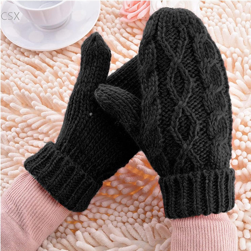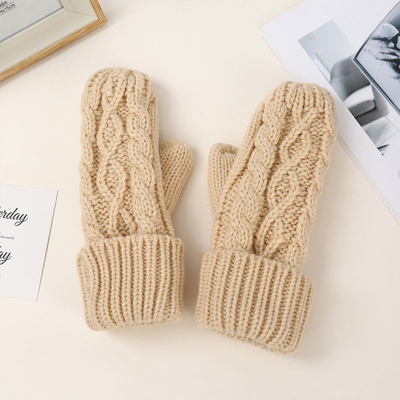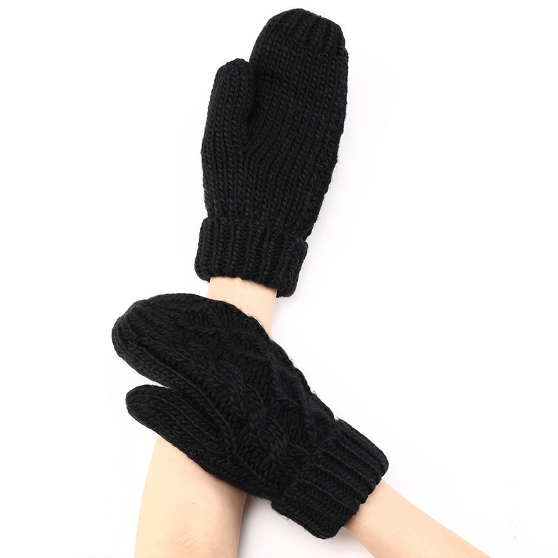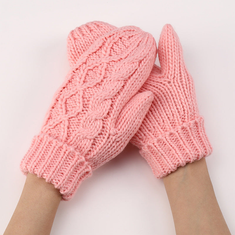 Diamond-shaped Finger-covered Woolen Gloves