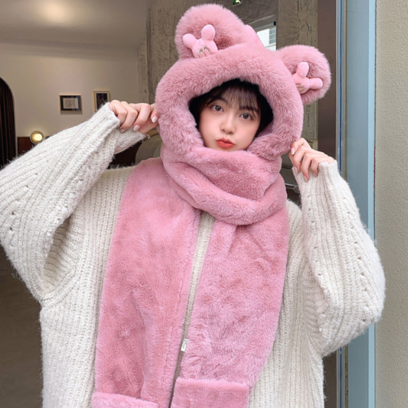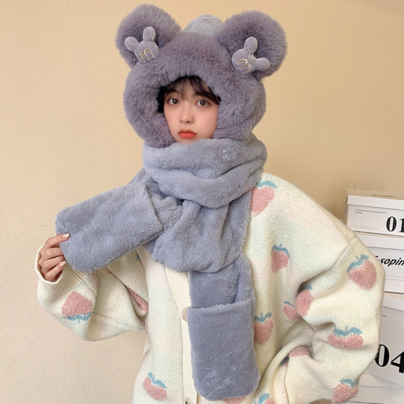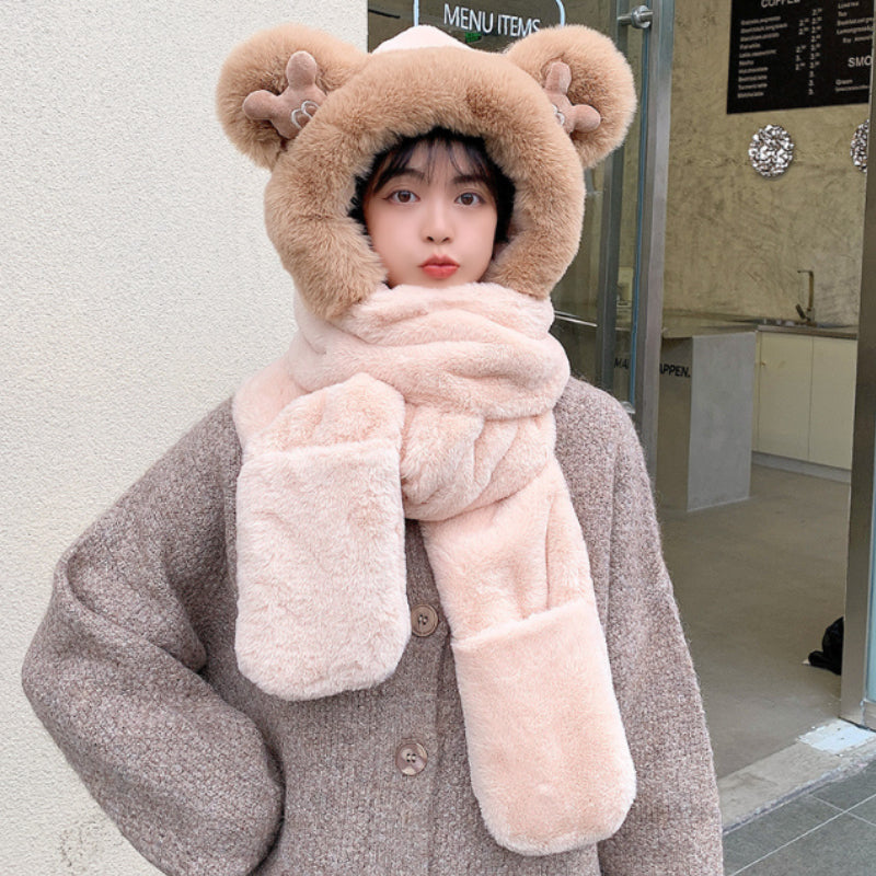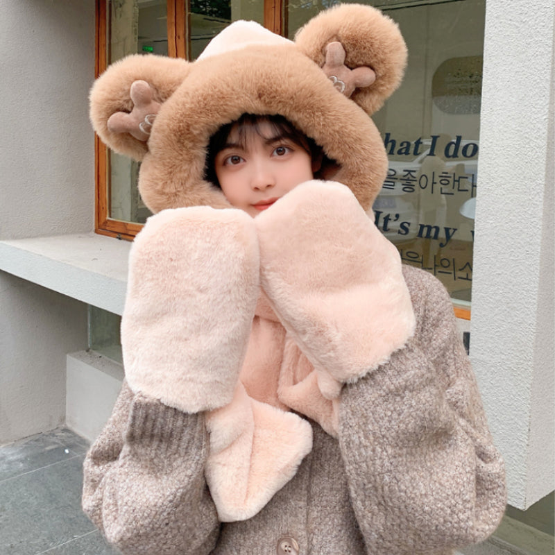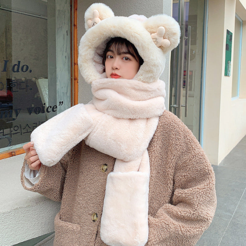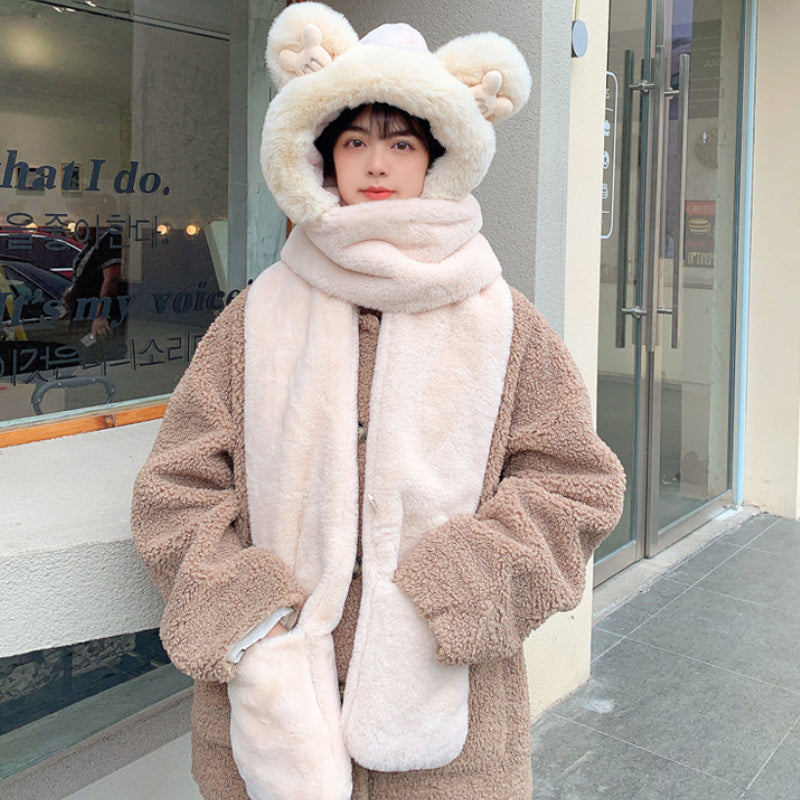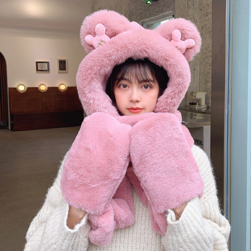 Warm Bear Hoodie Hat/Scarf/Gloves Set for Women