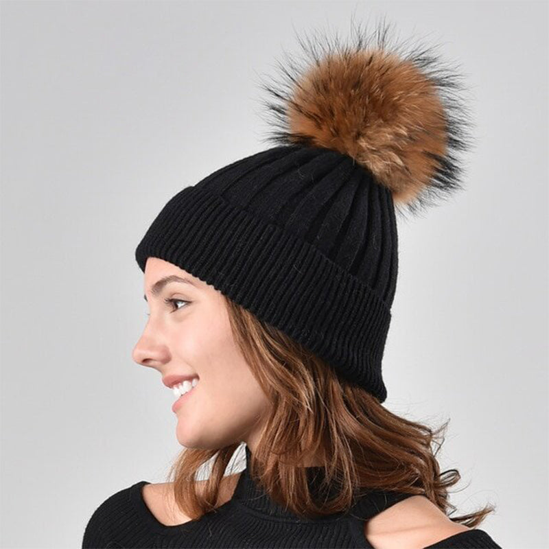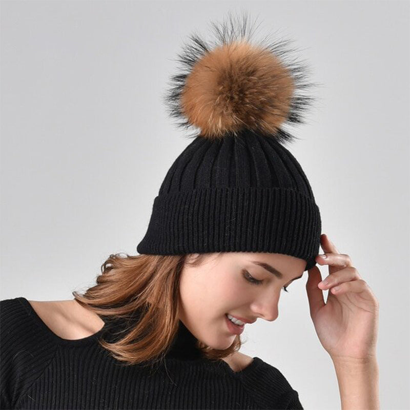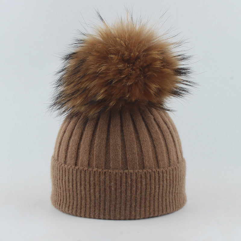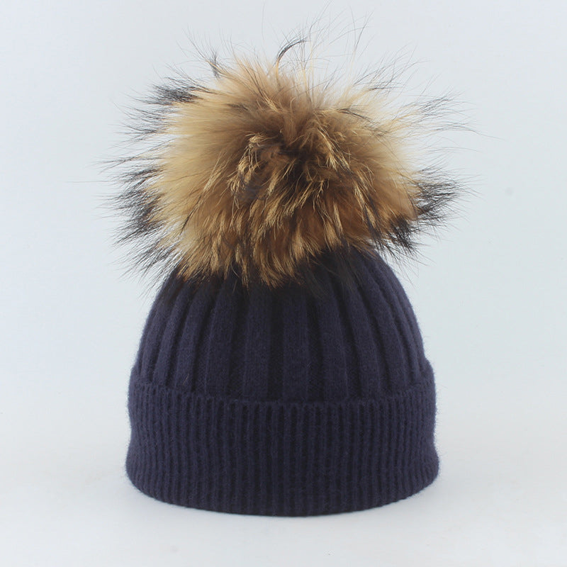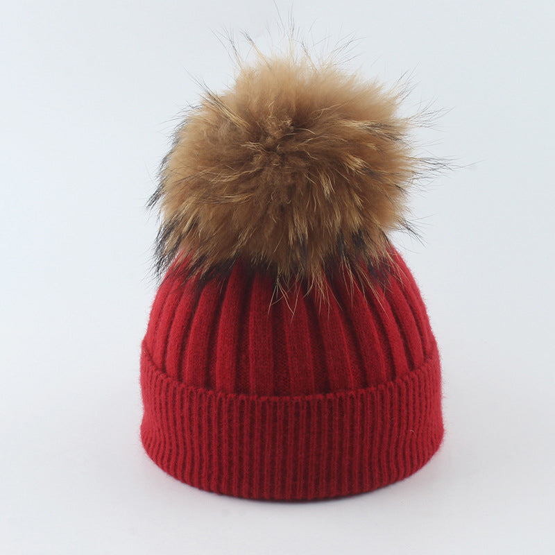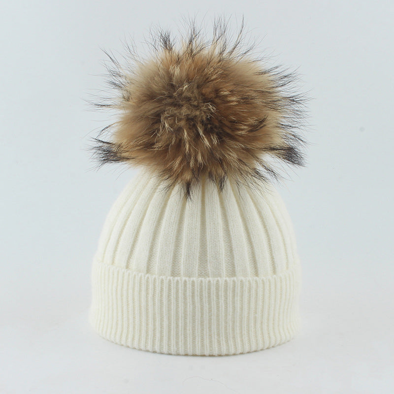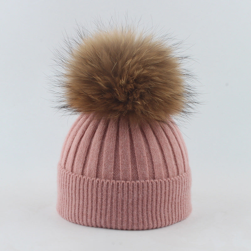 Winter Knitted Beanie Hat with Fur for Child
