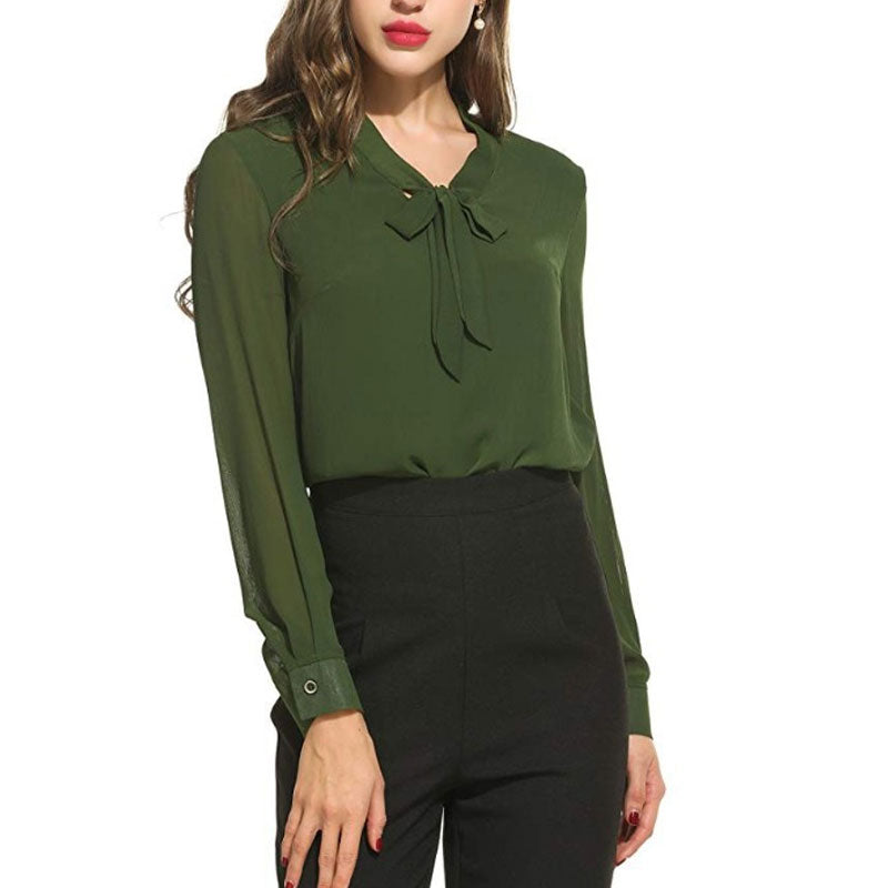 Chiffon Long Sleeve Bow Shirts