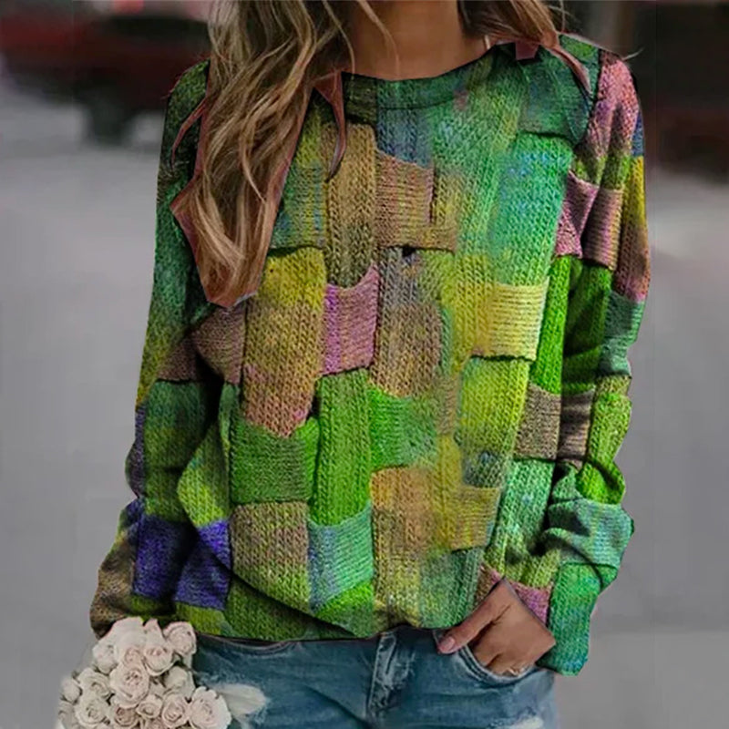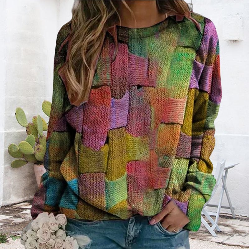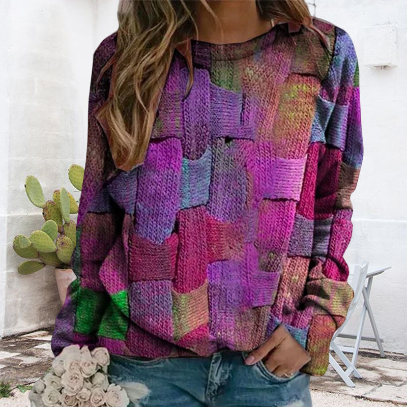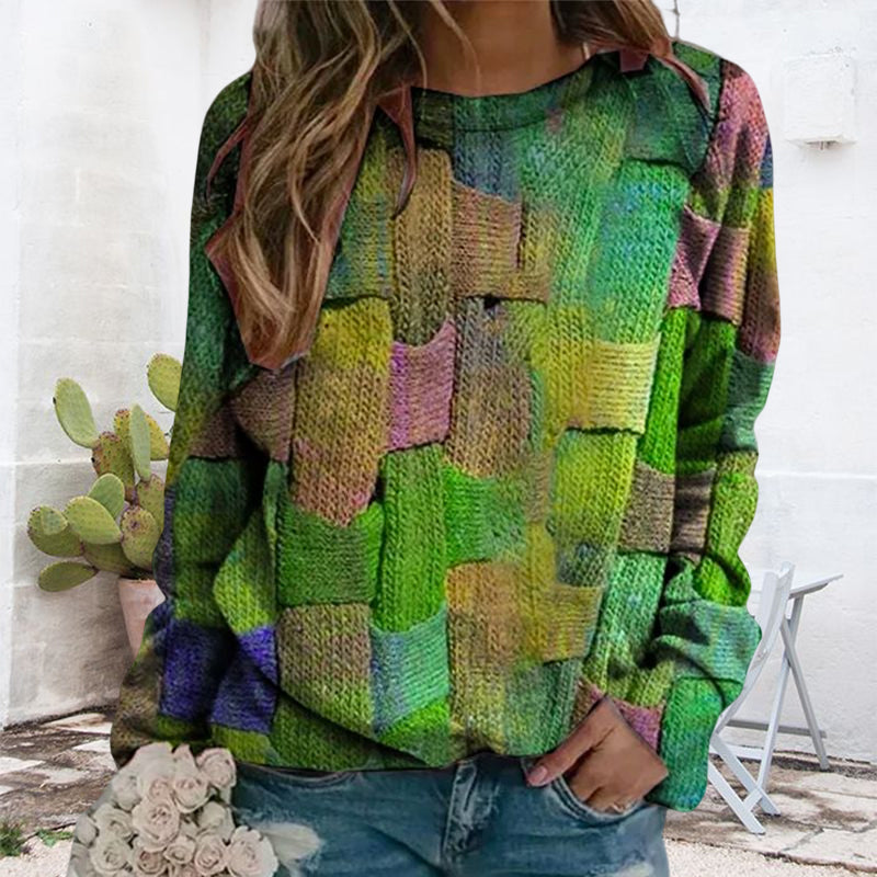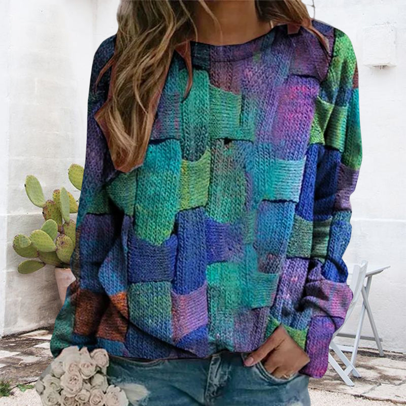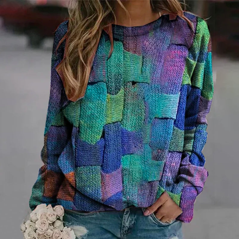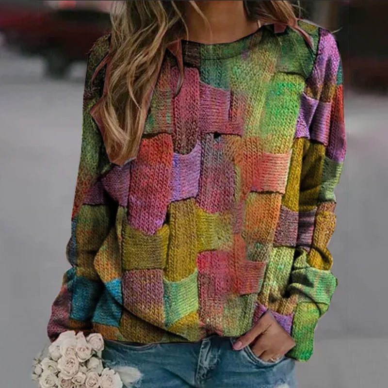 Crew-neck Paneled Long-sleeve Printed Sweater