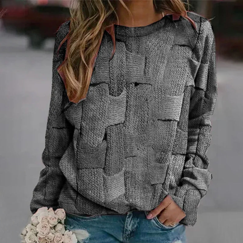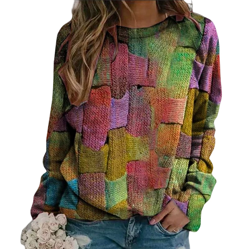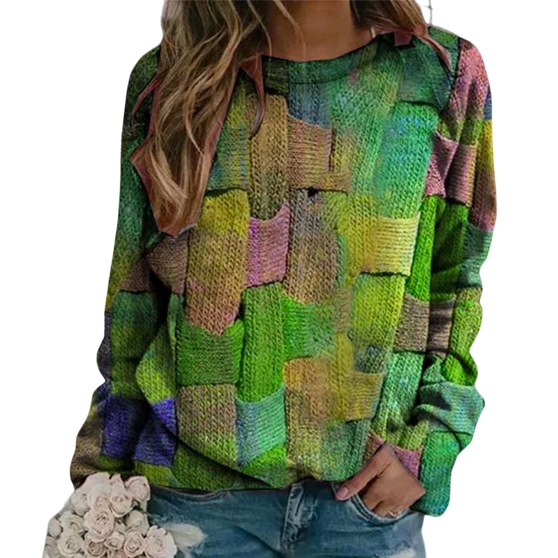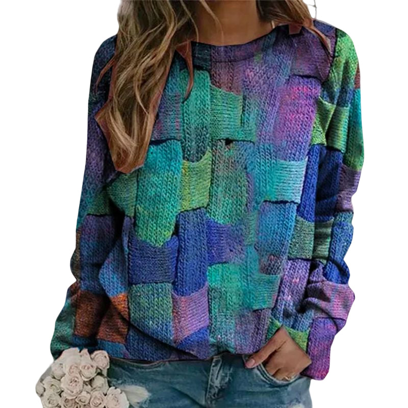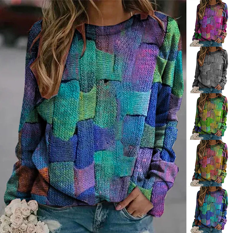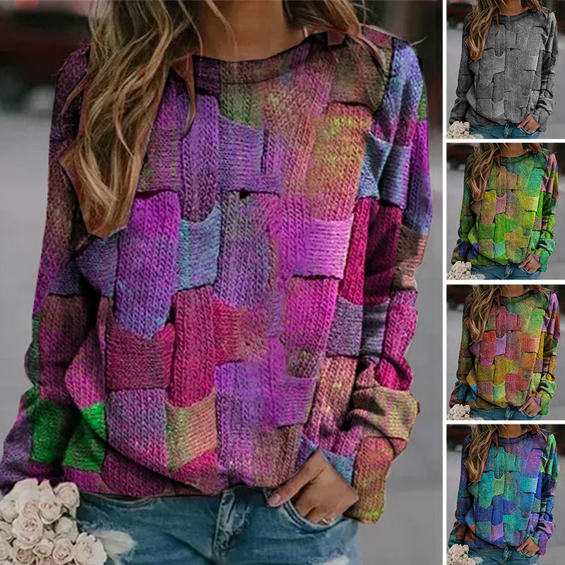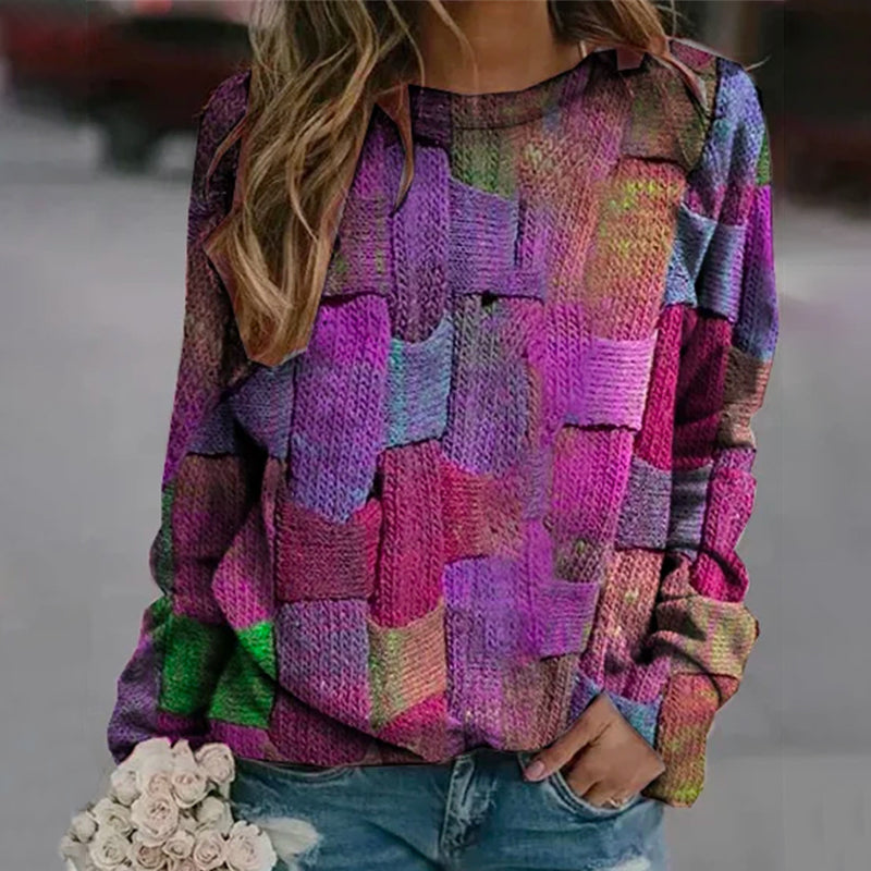 Crew-neck Paneled Long-sleeve Printed Sweater
