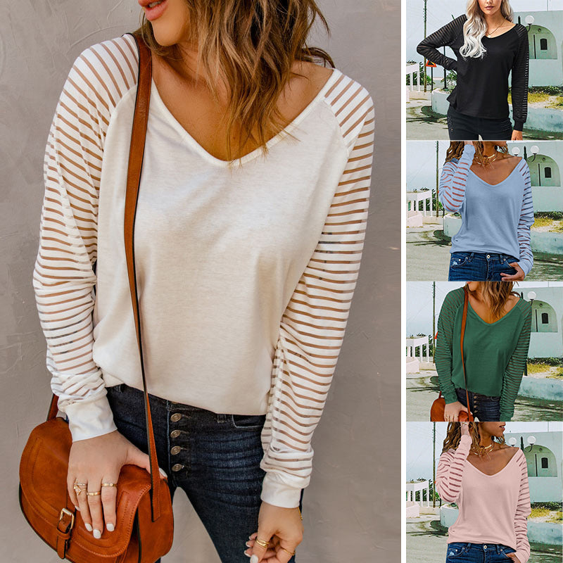 Cutout Striped Long Sleeve T-Shirt