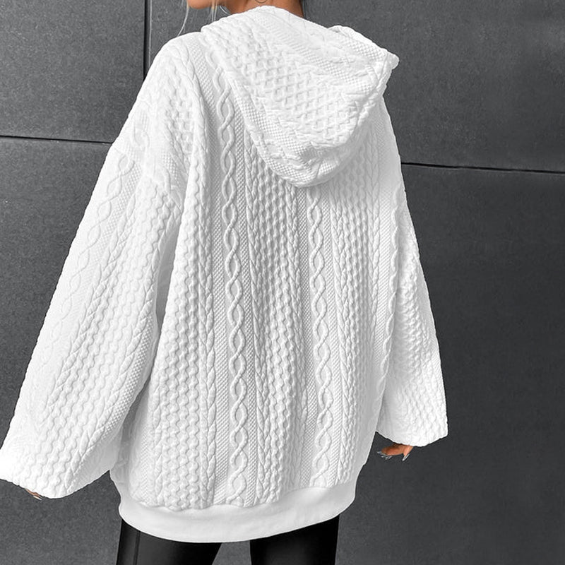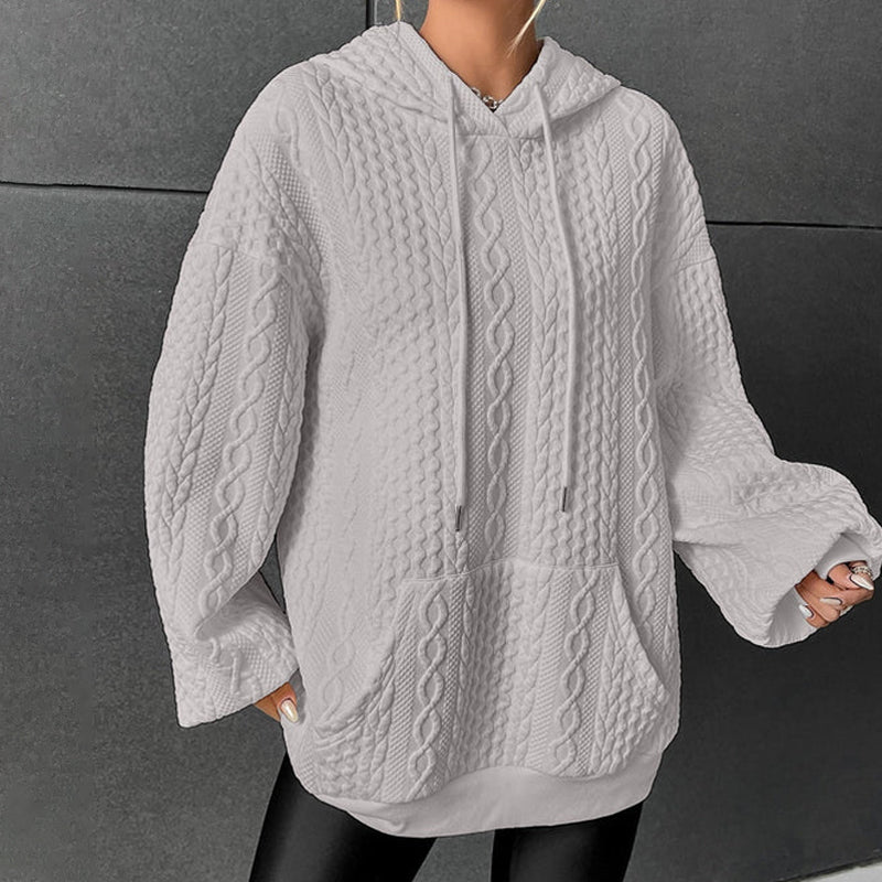Drop Shoulder Kangaroo Pocket Textured Drawstring Hoodie