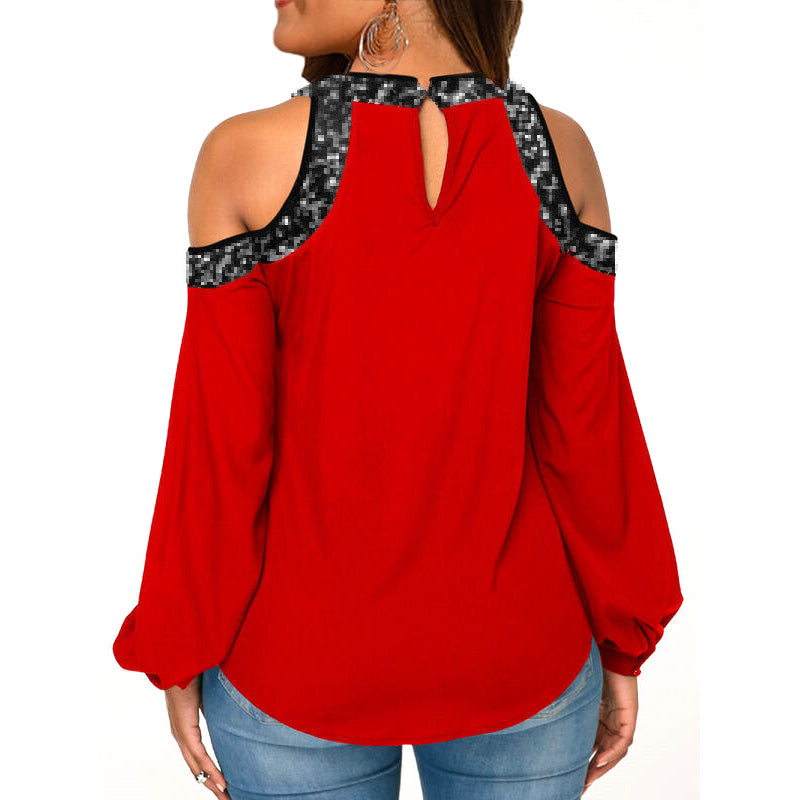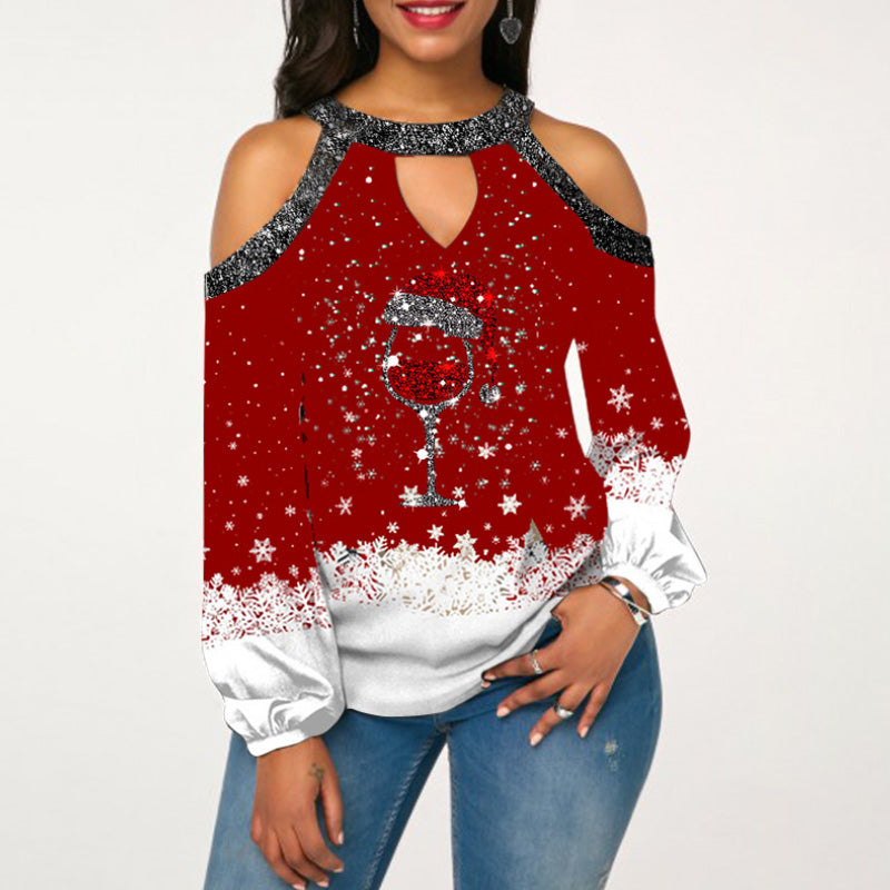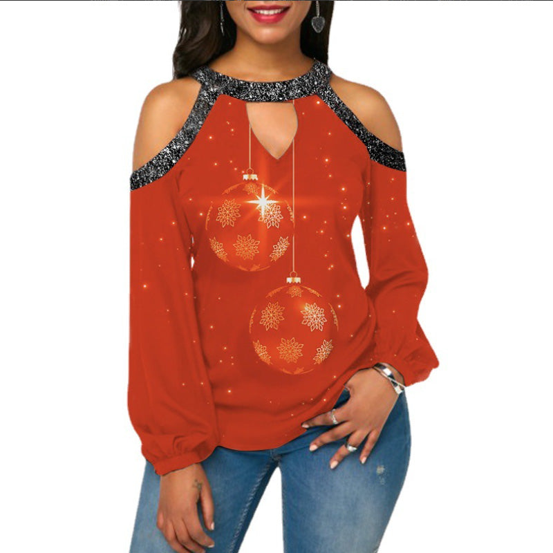 Halterneck Button Long-Sleeved Hollow T-shirt