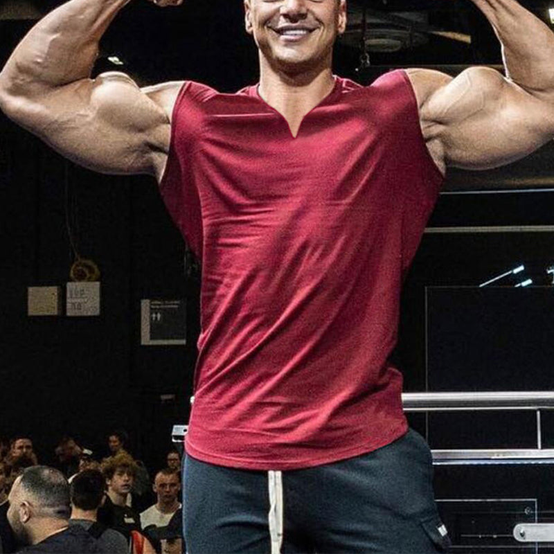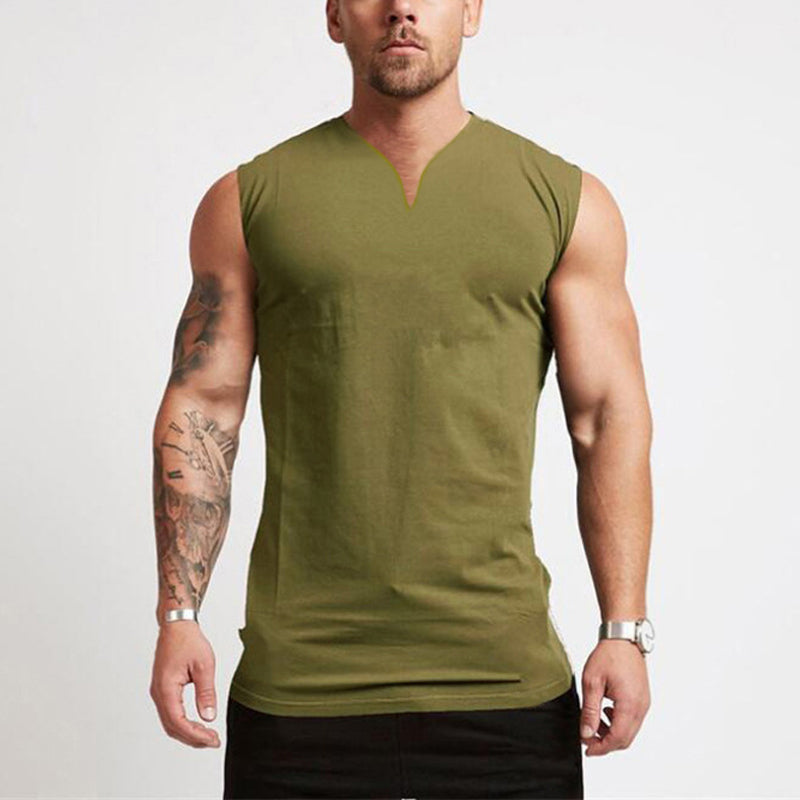 Men's Summer Single-colored Sports Vest with V-neck