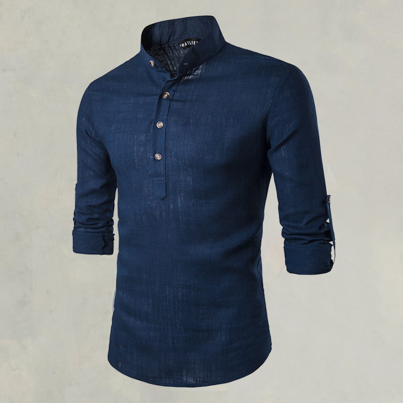 Casual Fashionable Solid Color Long Sleeve Linen Shirt With Stand Collar