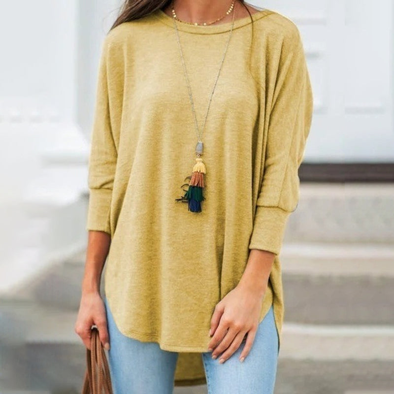 Loose Crew Neck Hem Irregular Solid Color T-Shirt