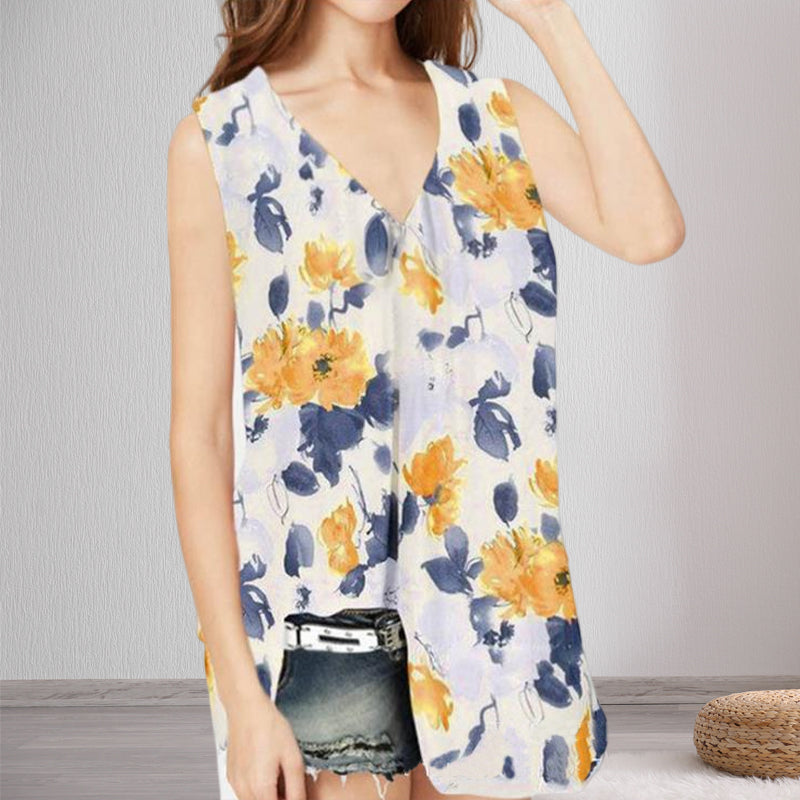 Loose Floral Print V-Neck Tank Top T-Shirt