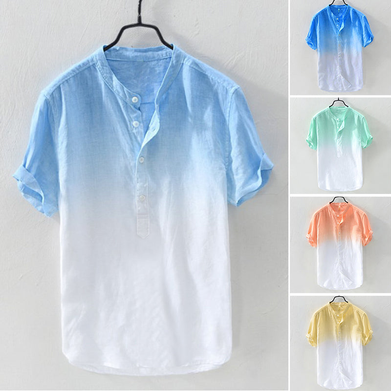Men's Solid Color Thin Breathable Gradient Collar Cotton Linen Top