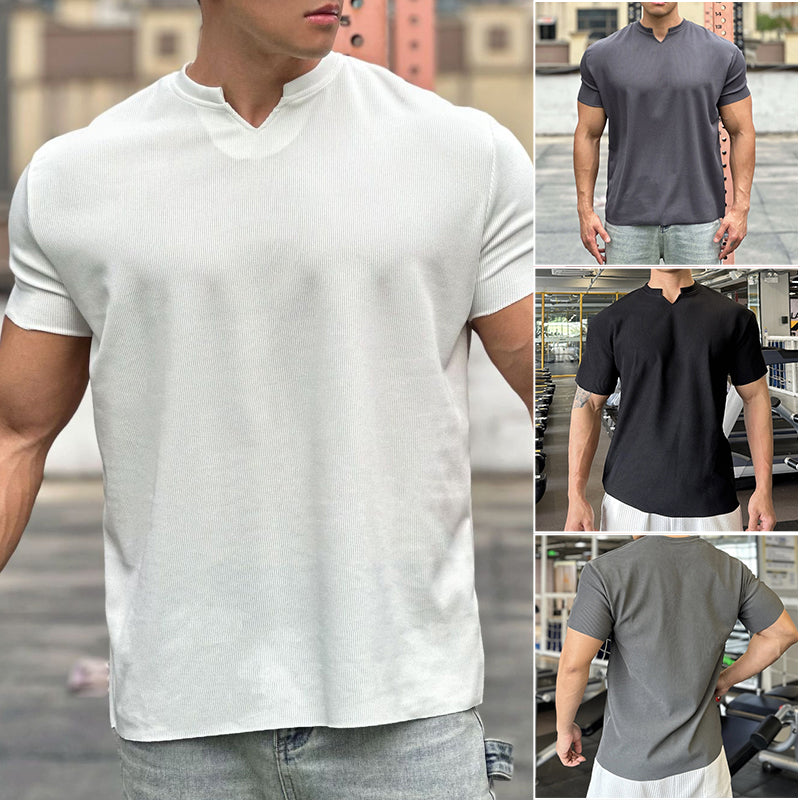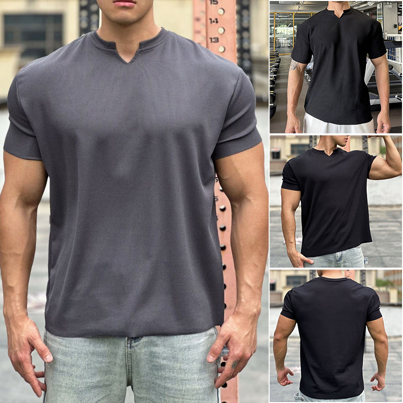 Men's V-Neck Short Sleeve Muscle Athletic Workout T-Shirts