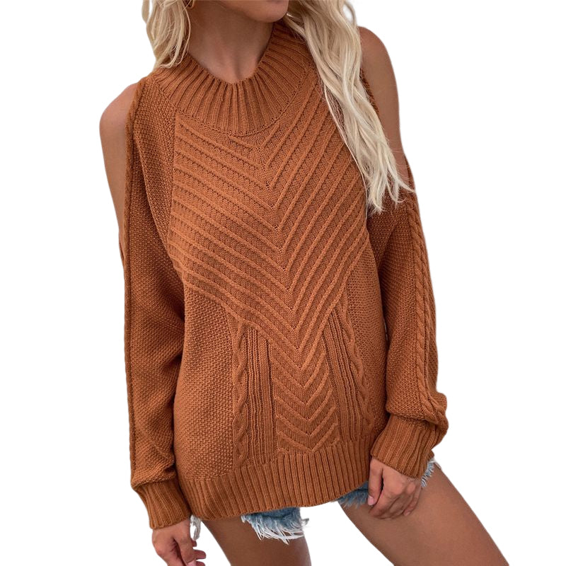 Off Shoulder Long Sleeve Crew Neck Sweater