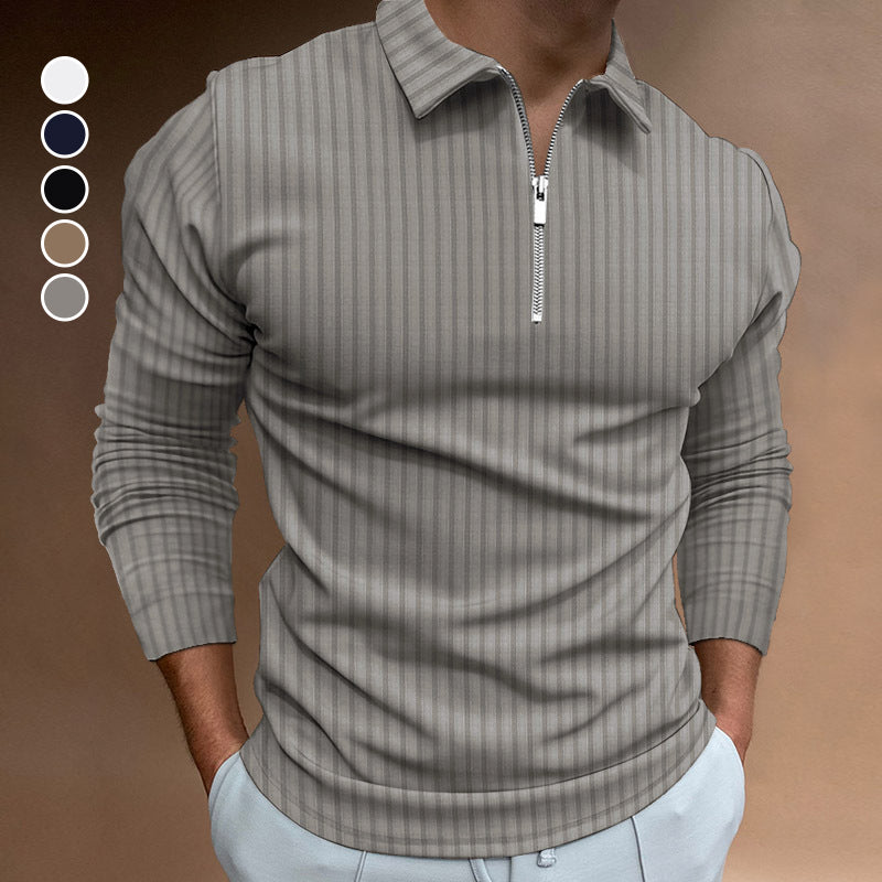 Polo Shirt Zipper Stripe Long Sleeve Men's Polo Shirt
