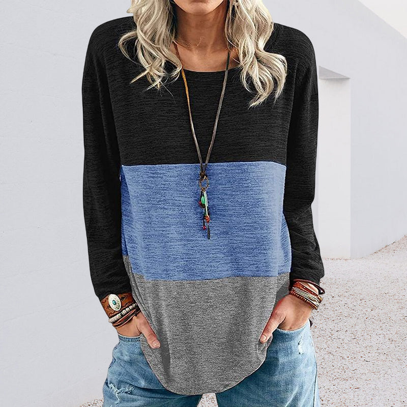 Round Neck Pullover Contrast Long Sleeve T-Shirt
