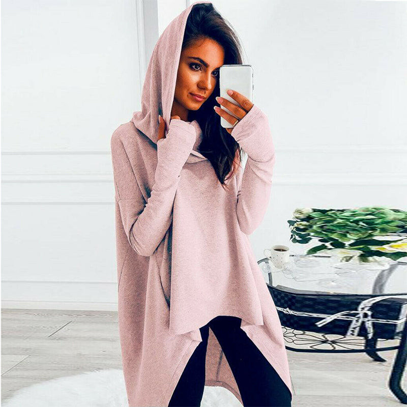 Solid Color Long-Sleeved Irregular Hooded Sweater