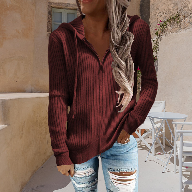 Stripe Casual Women's Hoodies Loose Knitwear Zipper Cardigan