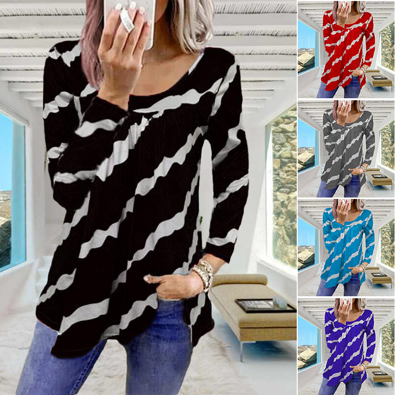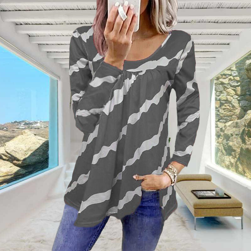 Striped Print Loose Long Sleeve T-Shirt