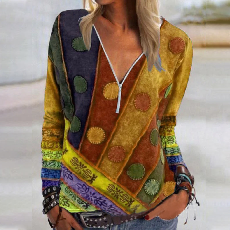 V Neck Abstract Long Sleeve Shift Shirts & Tops