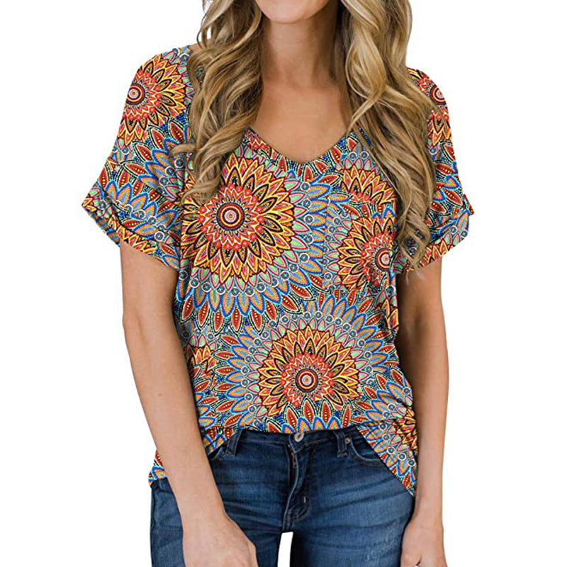 V-neck Loose Short Sleeves