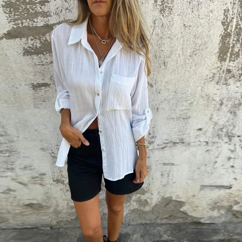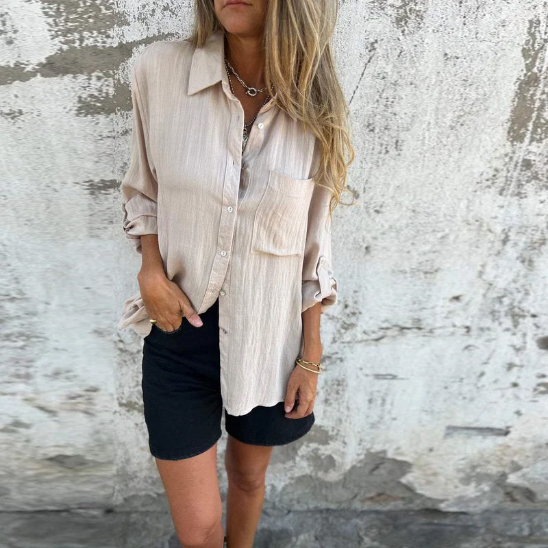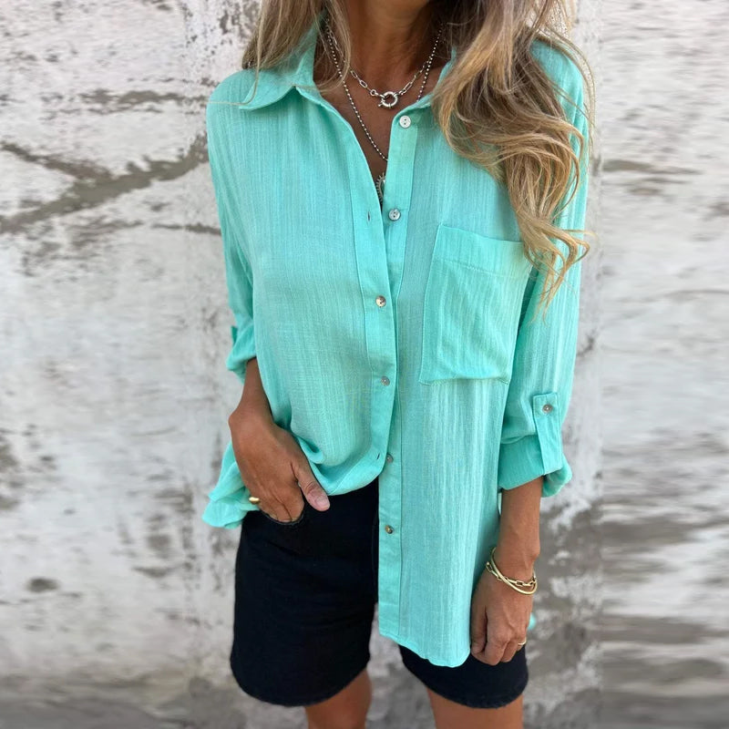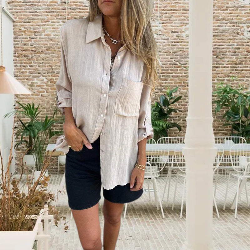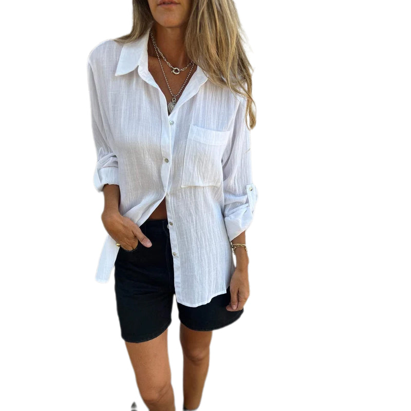 Versatile Lapel Shirt with a Large Pocket