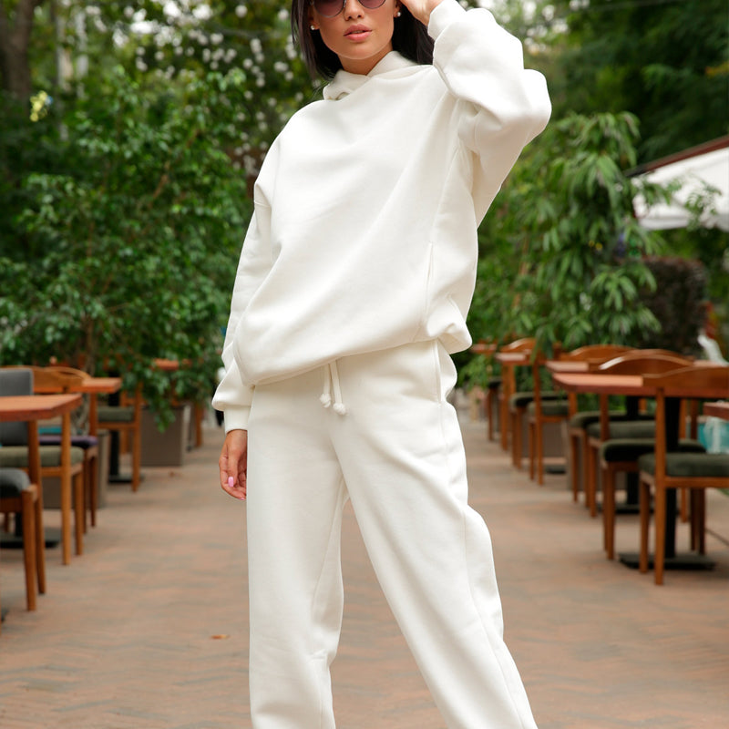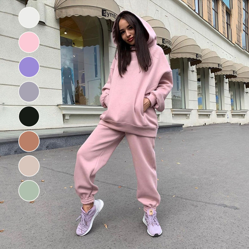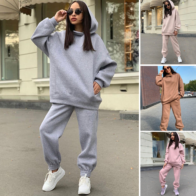 Women's Autumn/Winter Solid Color Hoodie Two Piece Set