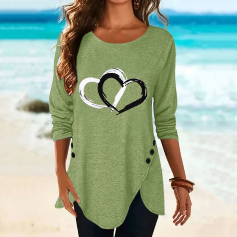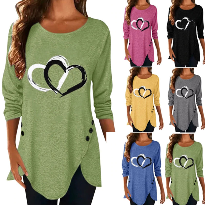 Women's Heart Print Irregular Long Sleeve T-shirt