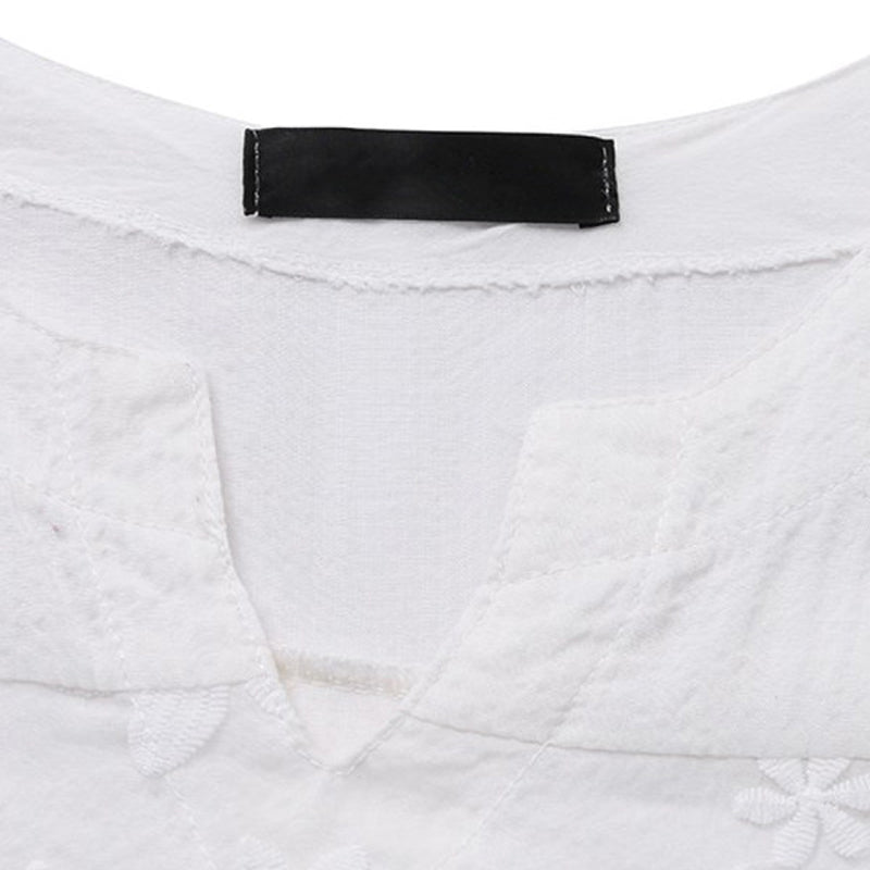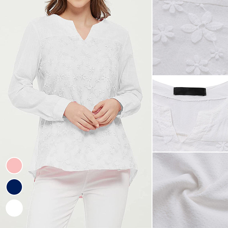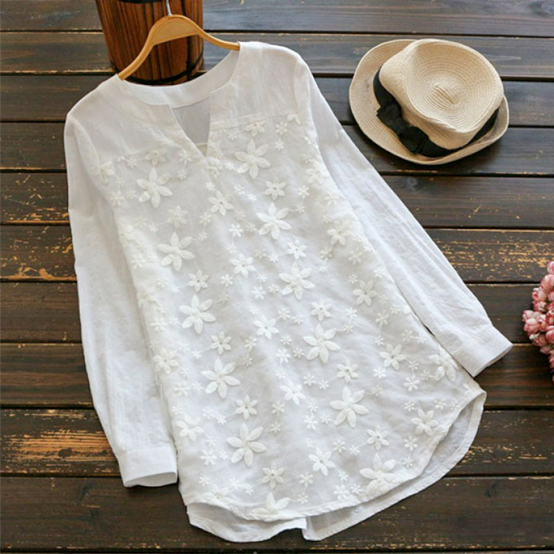 Women's Lace Embroidered Cotton and Linen Long-sleeved Shirt